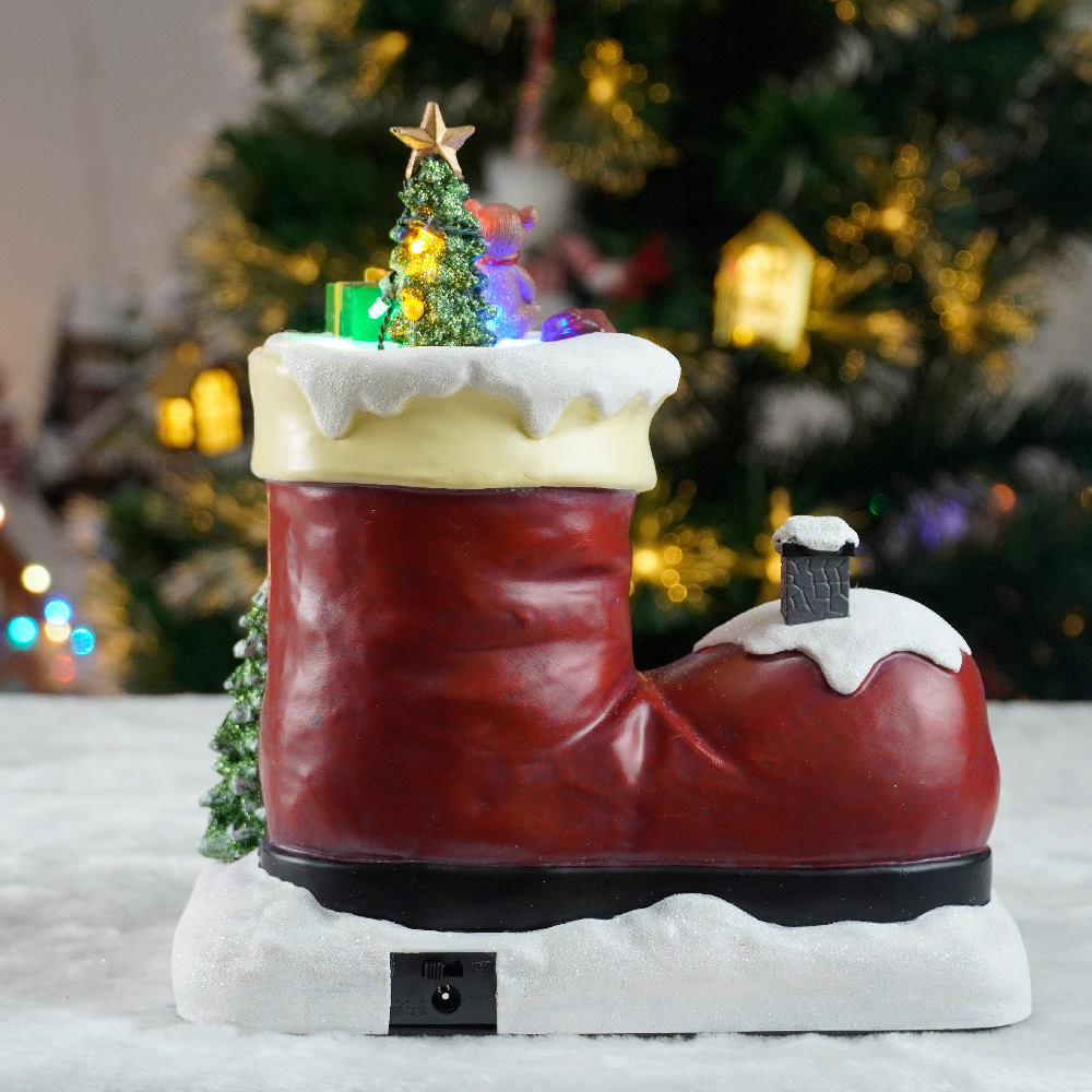 10" LED musical boot with Santa Claus opening the doorand 8 songs music Plastic Christmas decoration 2025 Christmas gift