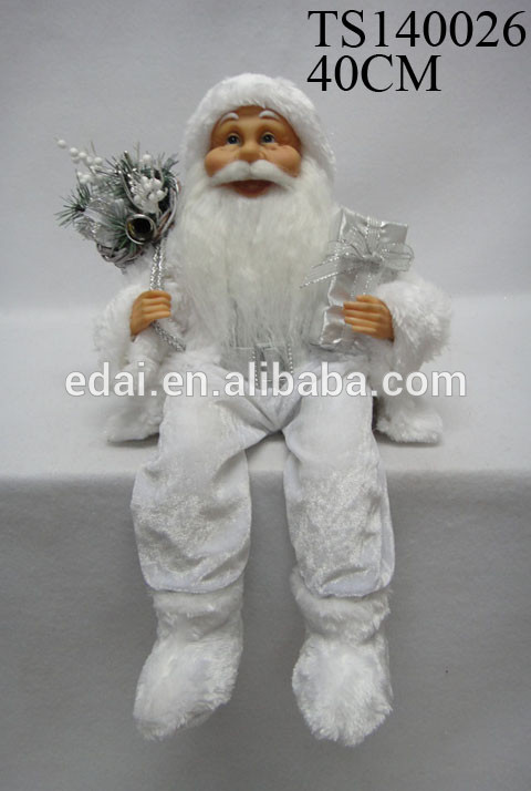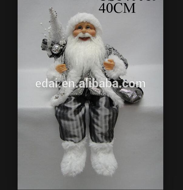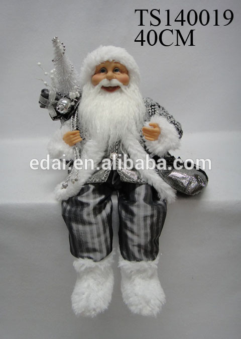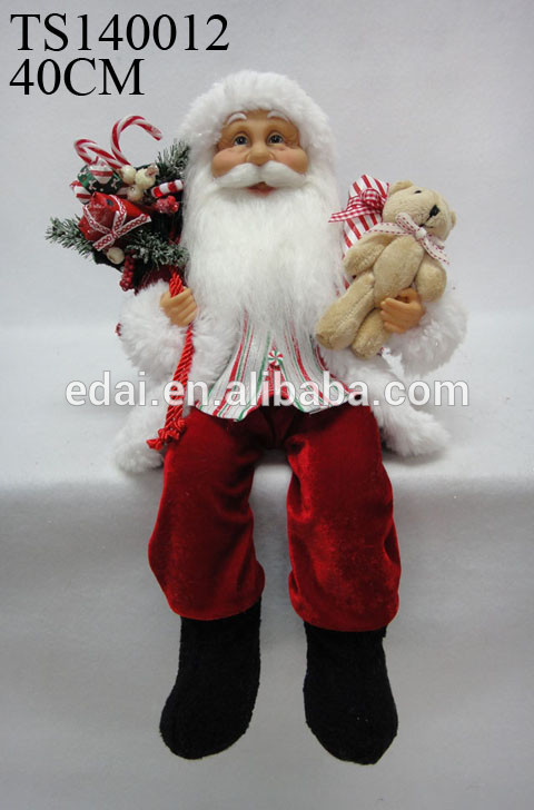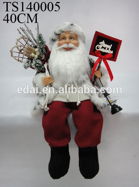 Wholesale fur shoe Sitting Santa Claus 40 CM indoor Christmas Decoration with mistletoe bag