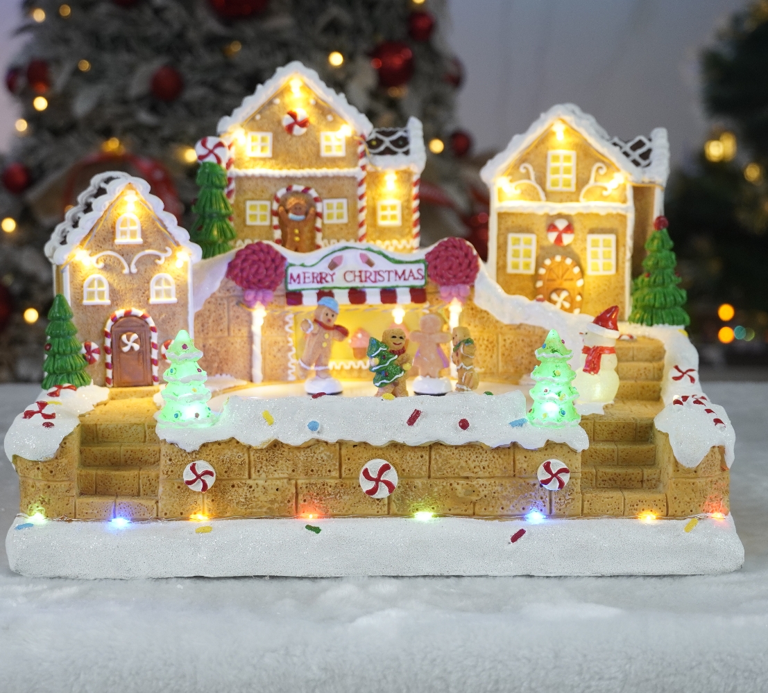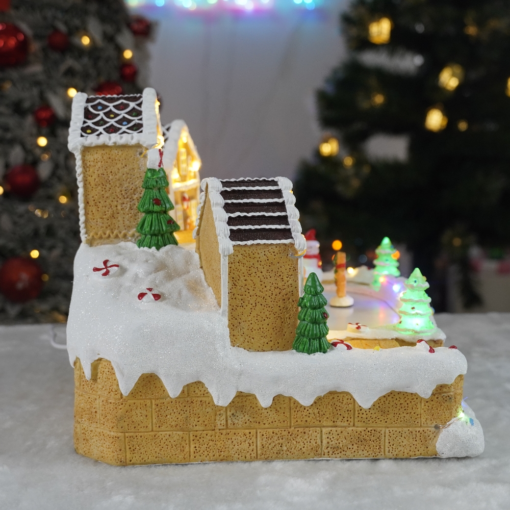 Animated LED light Christmas village decoration Type C connector Gingerbread man skating Christmas gift Music Adjustable volume
