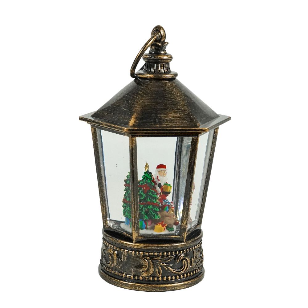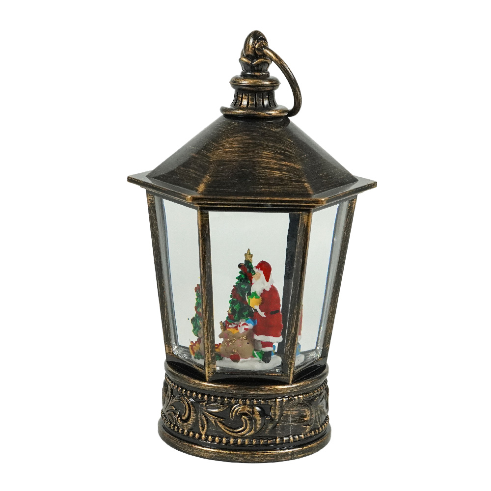 Antique Bronze LED glitter swirling resin Santa decorating scene water lantern Christmas snow globe