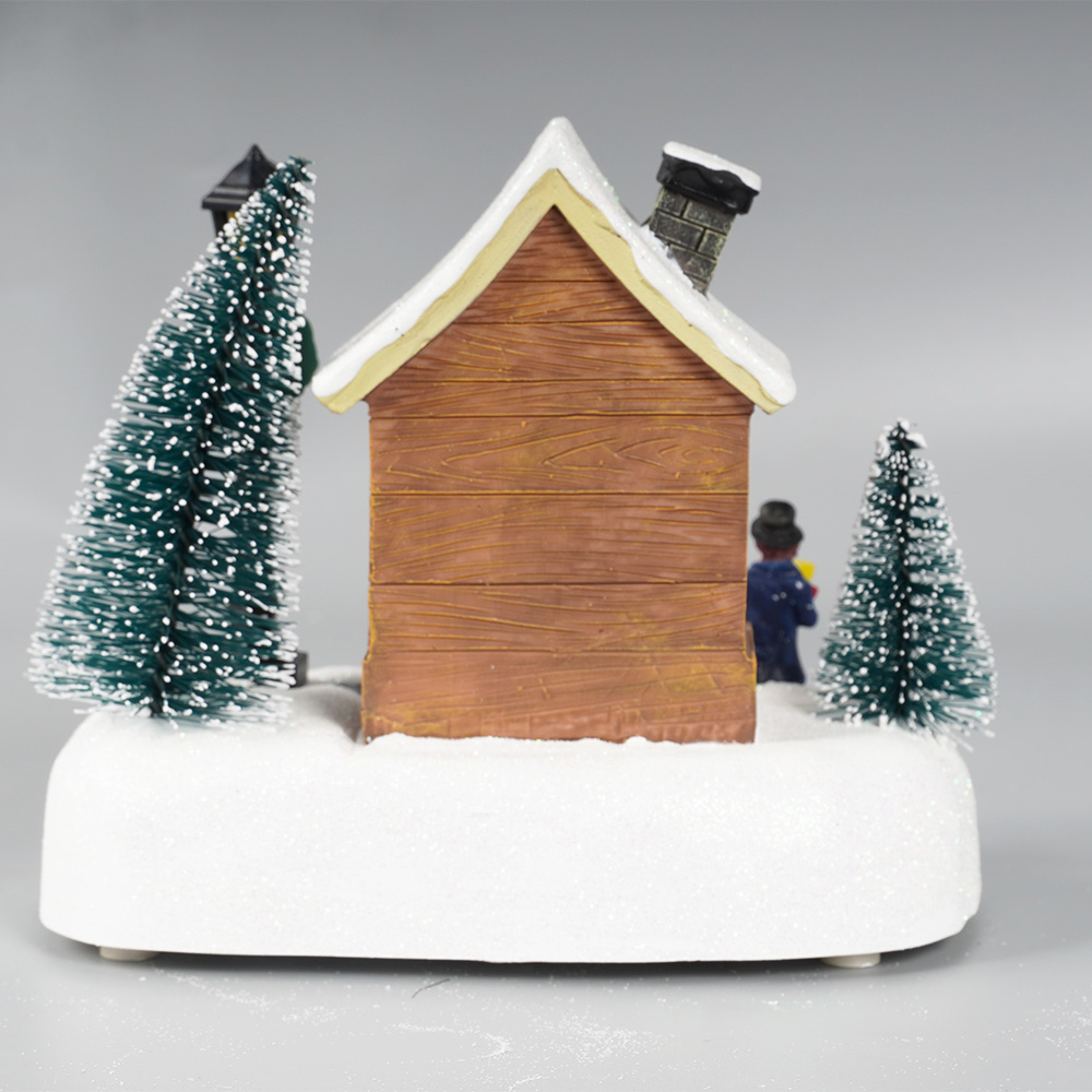 Cheap price Lighted Lawn Reindeer - Custom noel Xmas Santa Shop scene resin fiber optic musical miniature christmas village houses with Mult Led color – Melody detail pictures