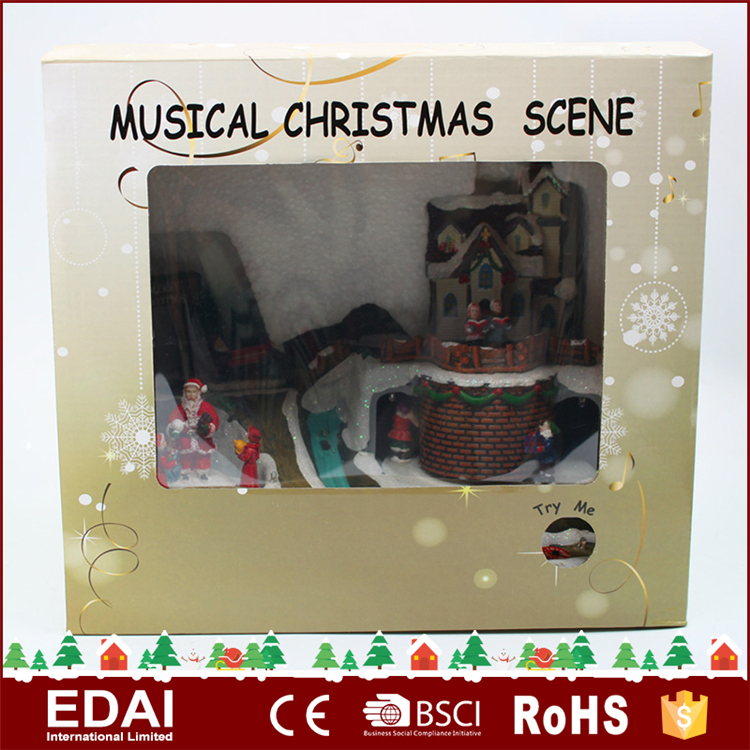 Products Name  Colorful painted snow scene polyresin music Christmas village adaptors