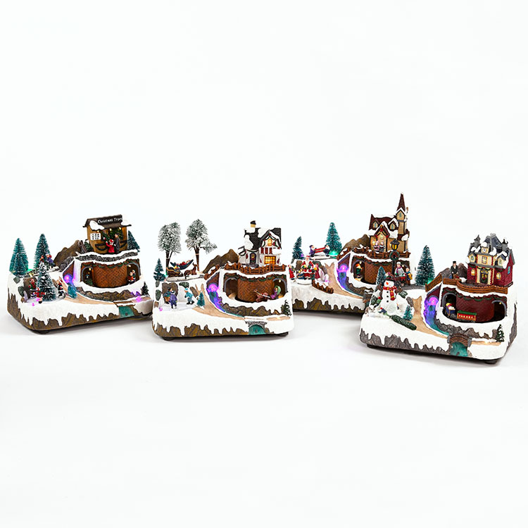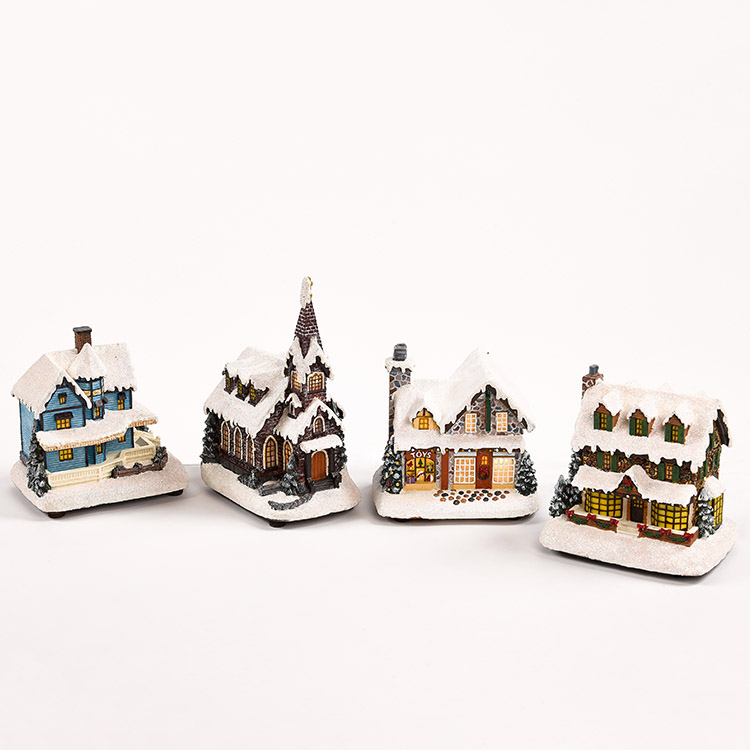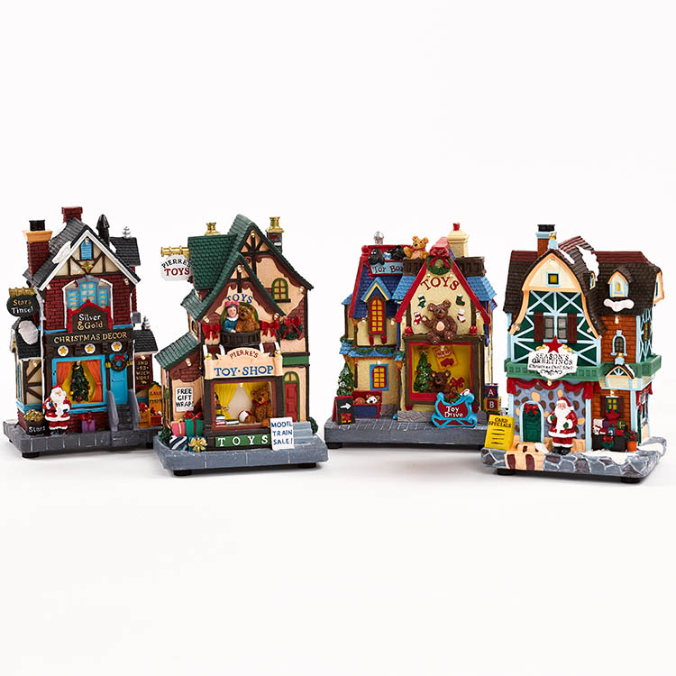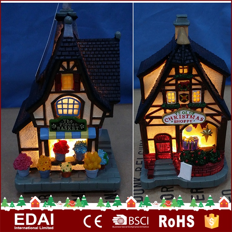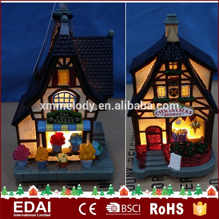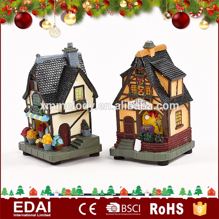 Product description Resin xmas flower shop,2 assorted design.