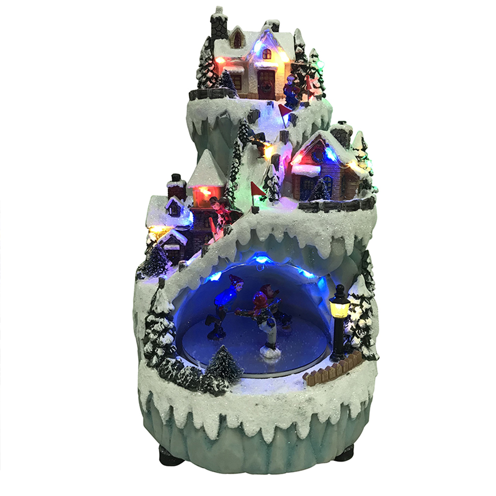 China supplier seasonal holiday decor noel mult led lighted musical putz Xmas skiing scene Christmas mountain Village
