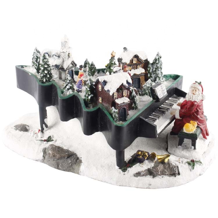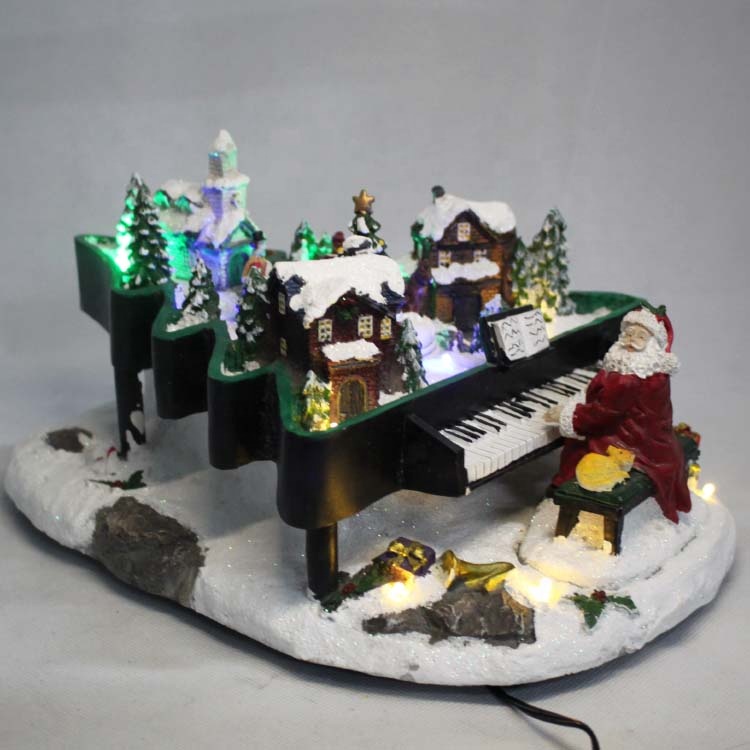 Chinese Professional Victorian Christmas Village Set - Polyresin Christmas santa piano animated with colorful LED and music house decoration – Melody