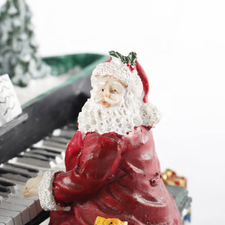 Polyresin Christmas Santa piano animated with colorful LED and music house decoration
