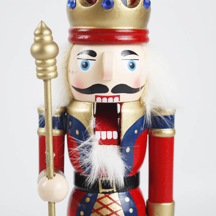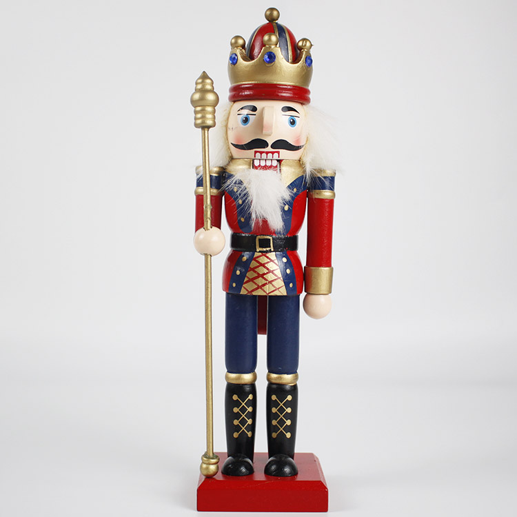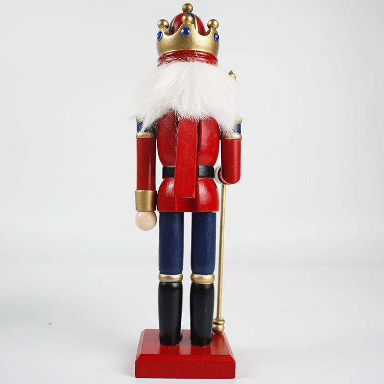 Products Name Wholesale Christmas festival decor red Uniform wooden Holding Gold Scepter Traditional King nutcracker figurine