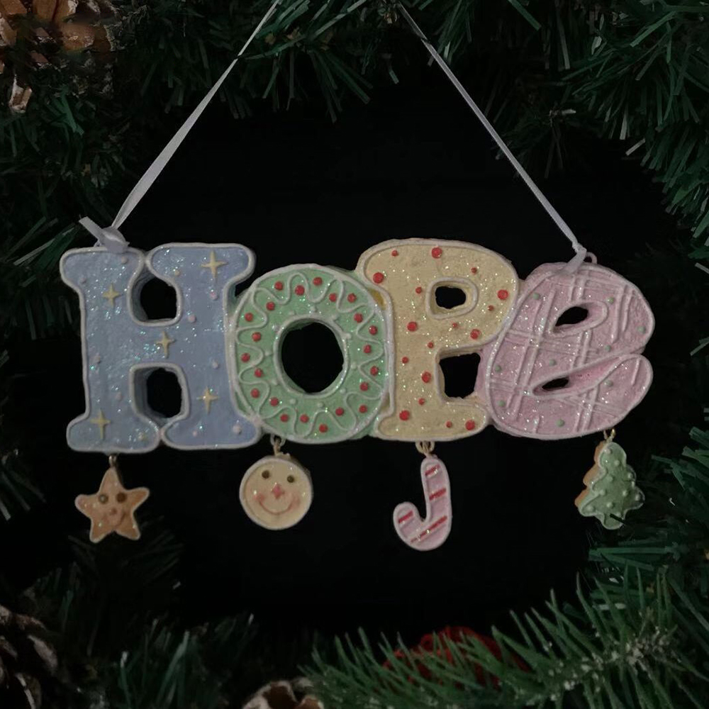 Christmas tree ornaments Hope letter Gingerbread ornament Resin Hand-painted Crafts letter pendant Christmas hanging decor
