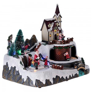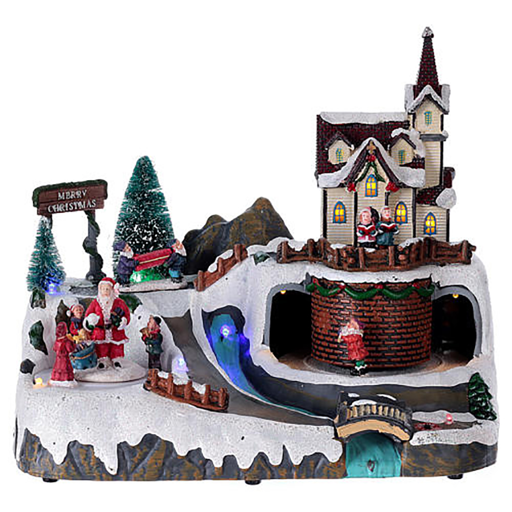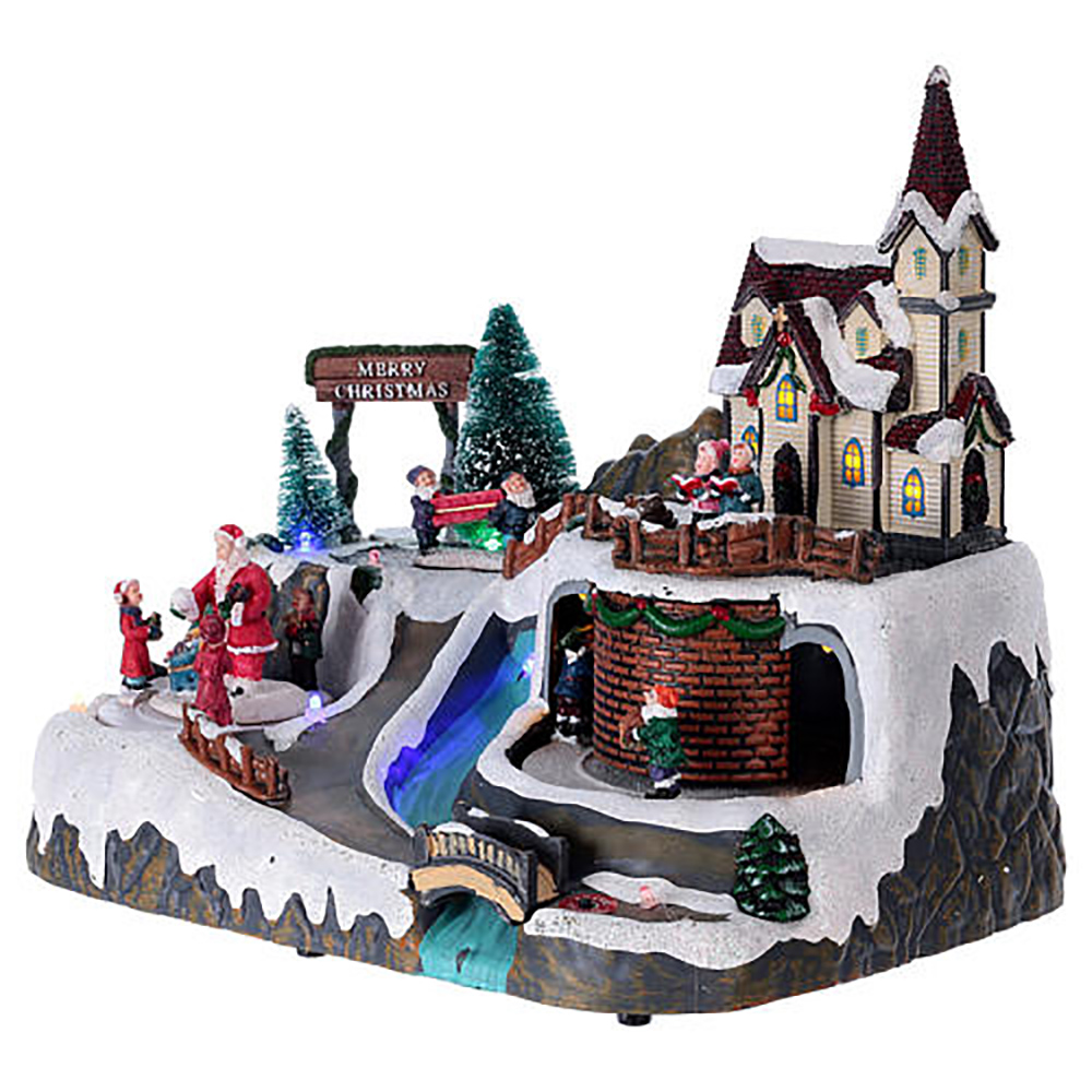 Colorful painted snow scene Led polyresin music christmas village decoration with movement |