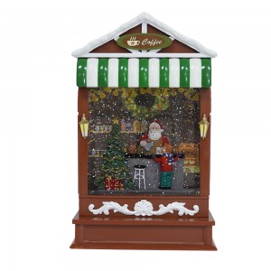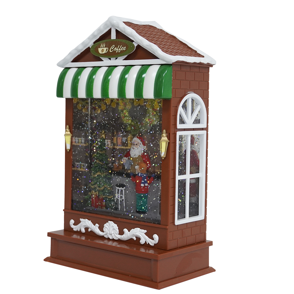 Custom LED light up & swirling glitter coffee shop scene water lantern Christmas snow globe Christmas Decoration