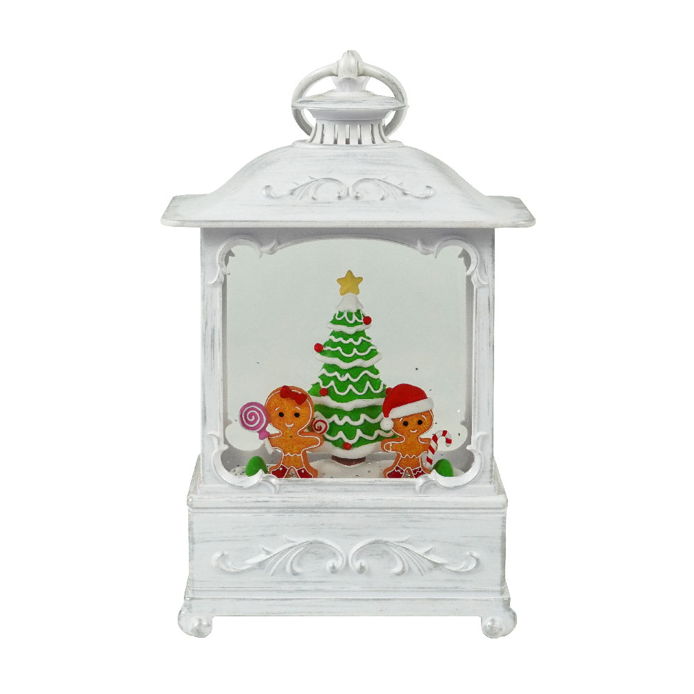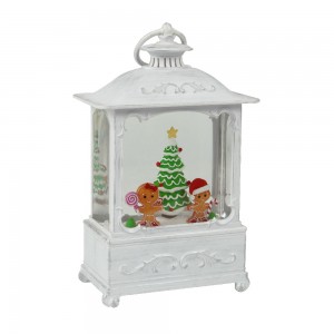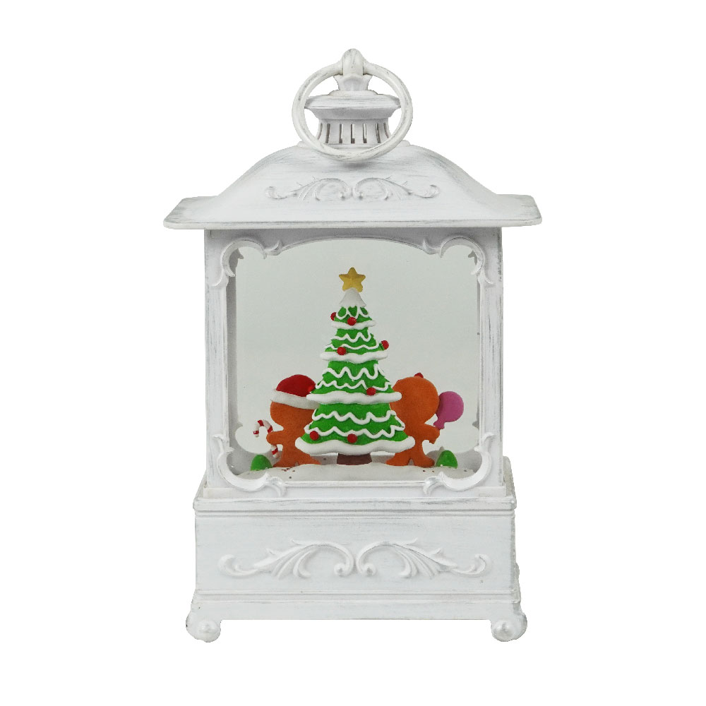 Custom made MELODY Pre Lit Plastic Gingerbread snowman tree water Glitter Christmas Lantern snow globe
