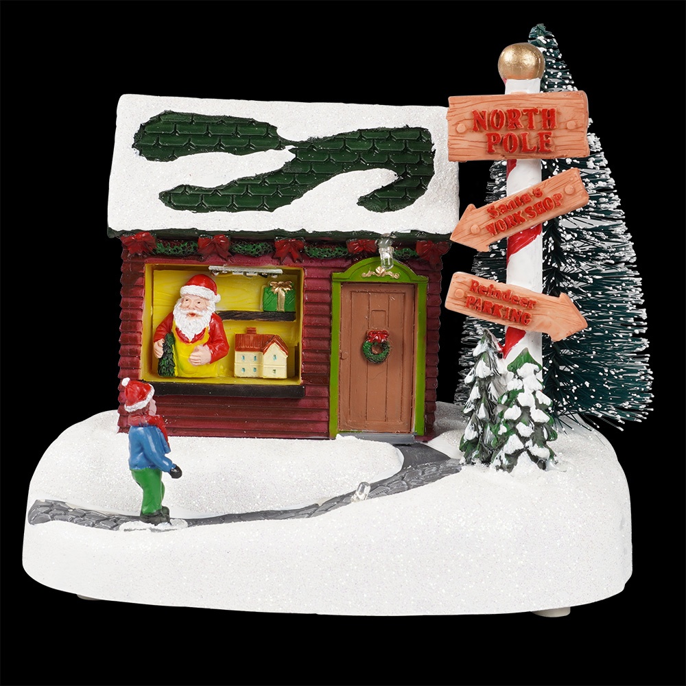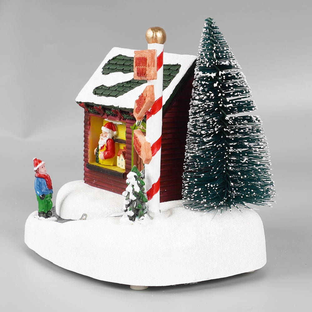 Custom noel Scene holiday time resin Led Illuminated Musical Christmas house village with 8 Xmas songs |