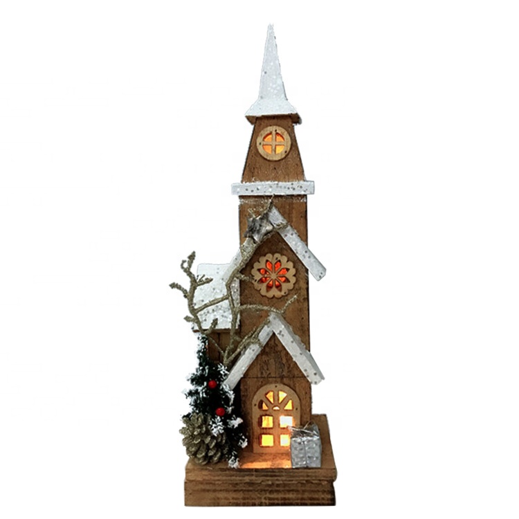 Custom Noel tabletop Wooden LED lighted church house indoor decor wholesale Christmas item |