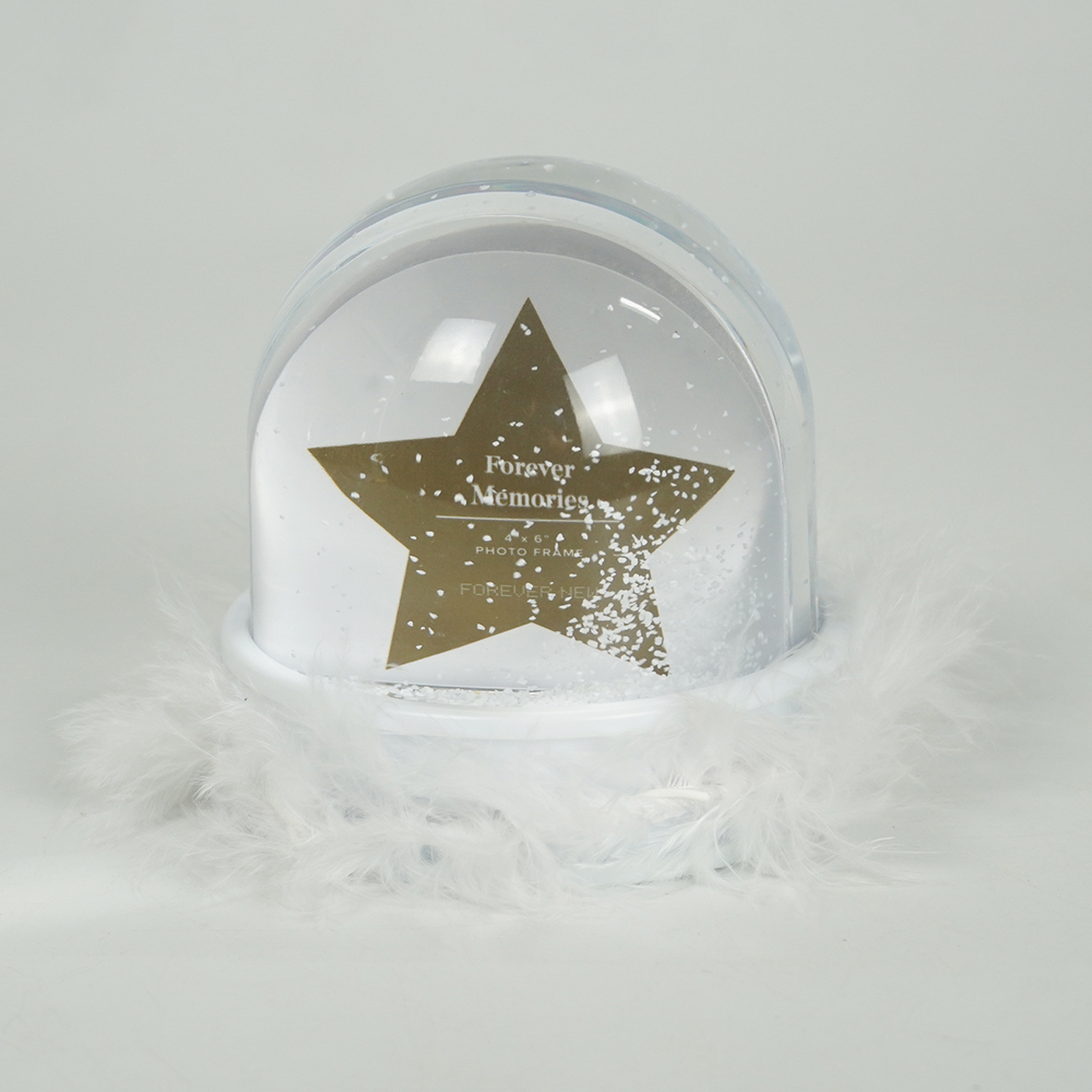 | Products Name | Customized clear souvenir Acrylic dome Photo frame snowing water snow globe with picture inserted |