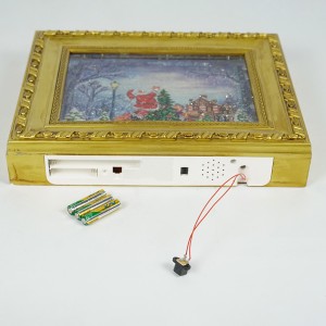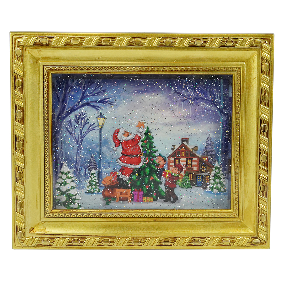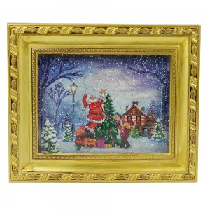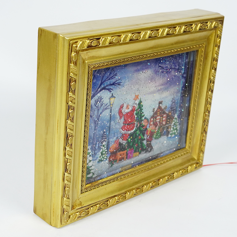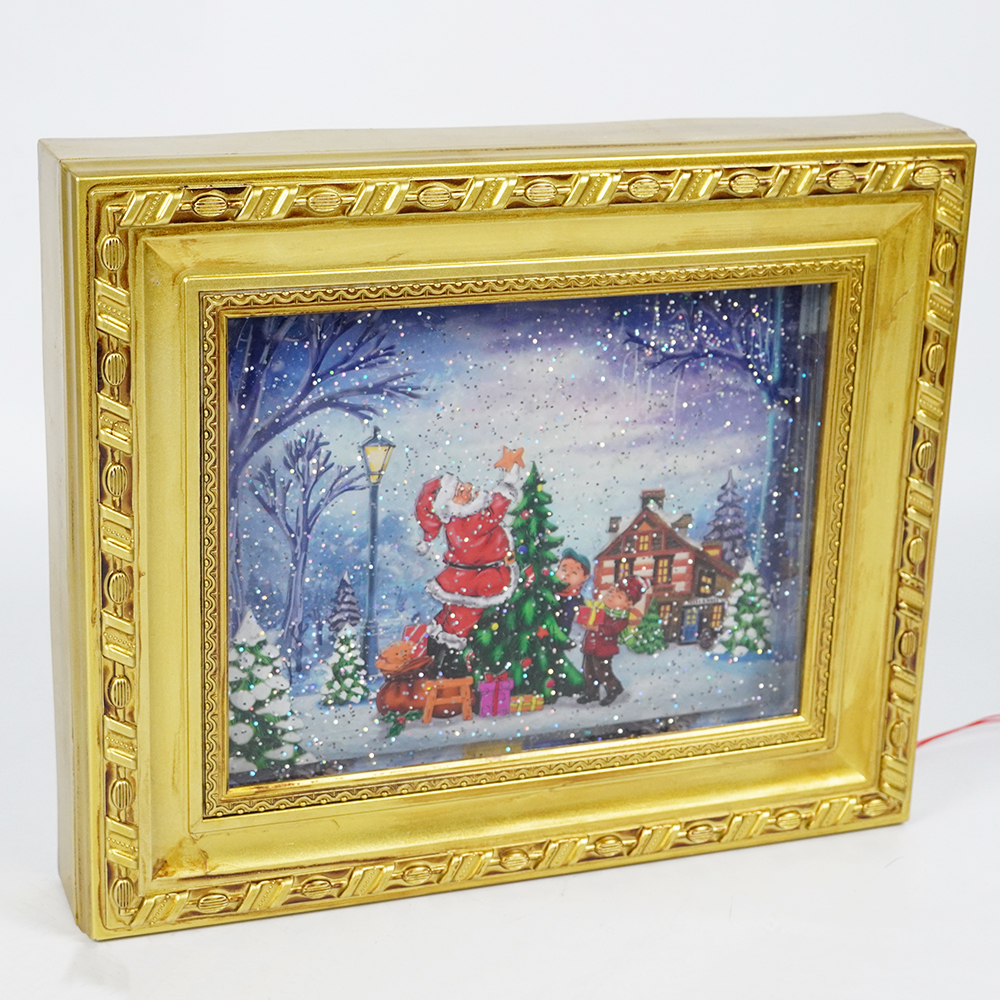 Customized new noel Santa Xmas village tree scene Photo frame water spinning musical led Christmas snow globe |