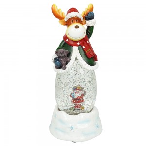 Customized noel BO water spinning Reindeer musical led Christmas snow globe with Xmas Santa scene |