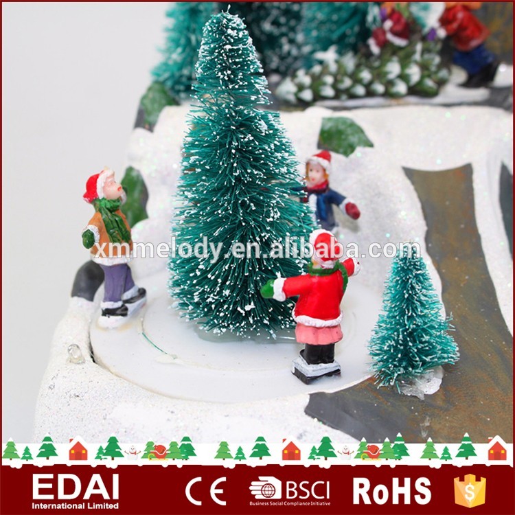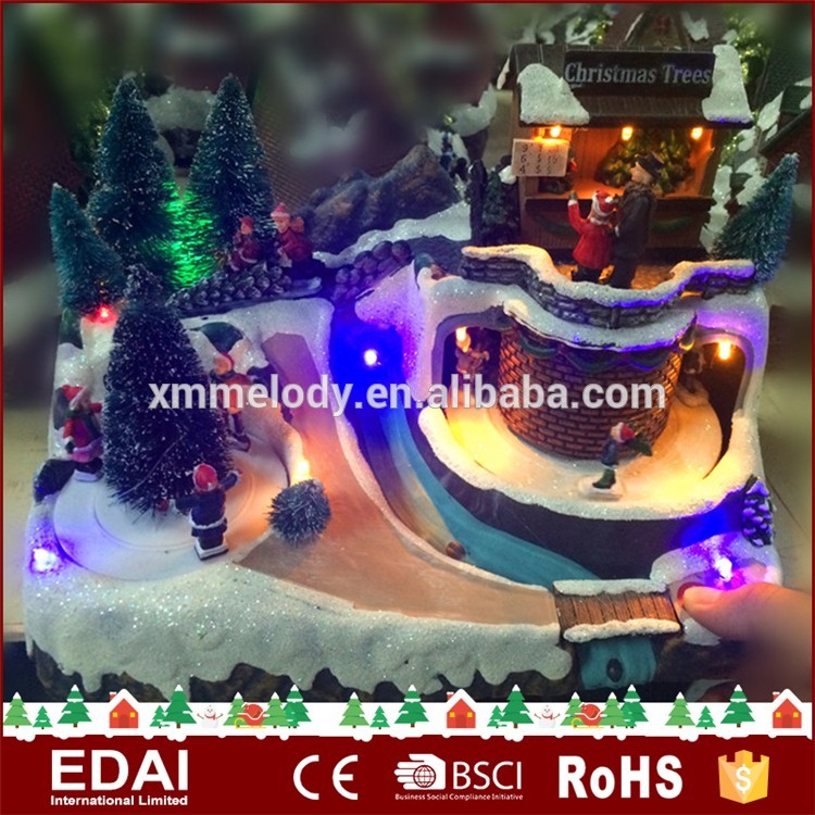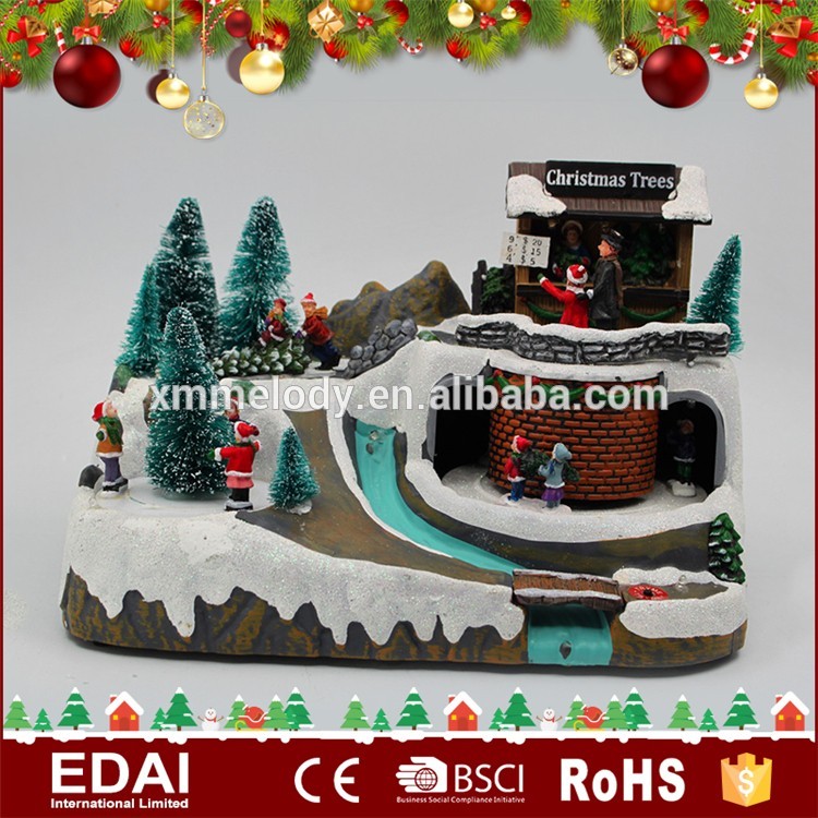 Colorful painted snow scene polyresin music Christmas village adaptors