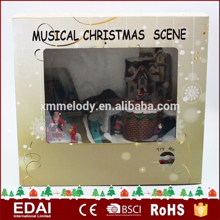 | Products Name | Colorful painted snow scene polyresin music Christmas village adaptors |
