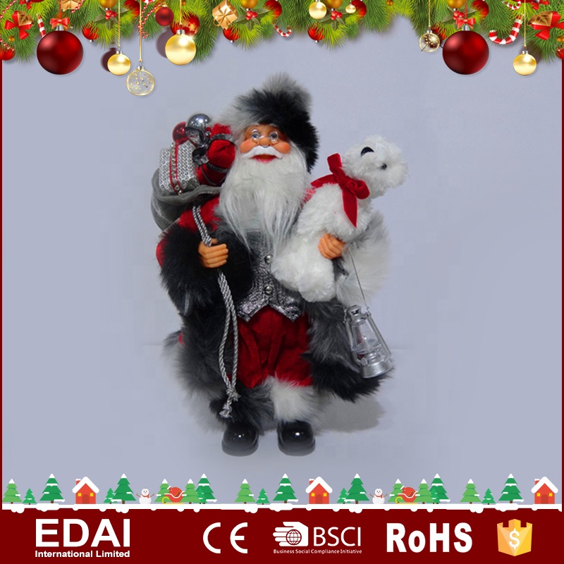 Christmas decor style Indoor decor traditional fabric Standing Santa Claus figurine