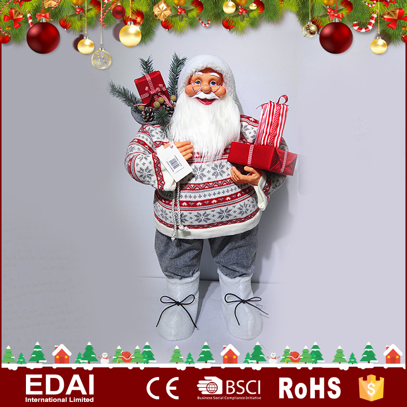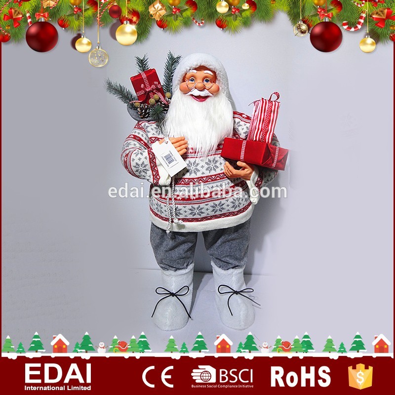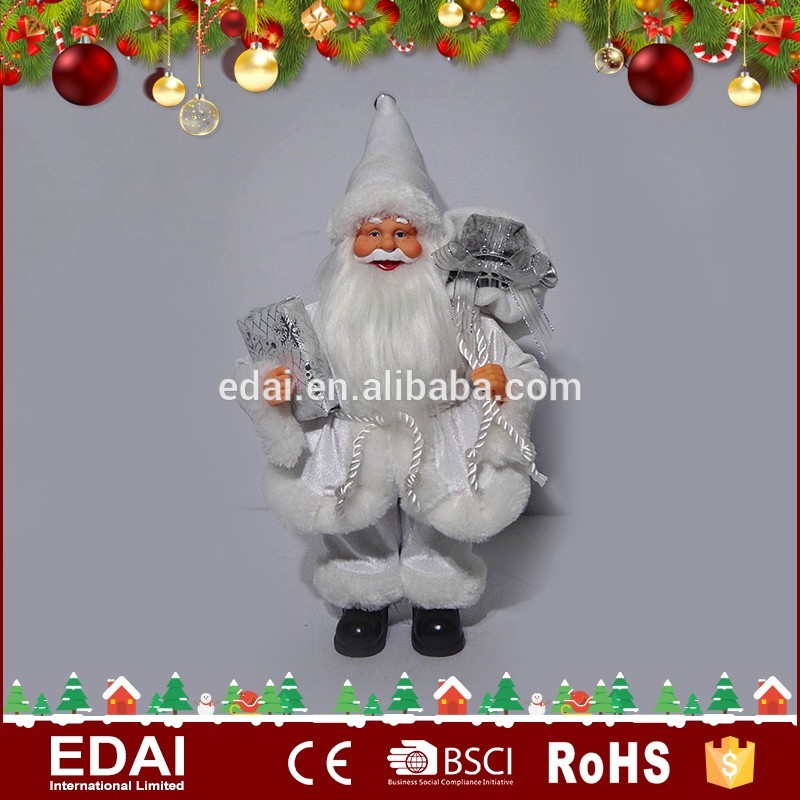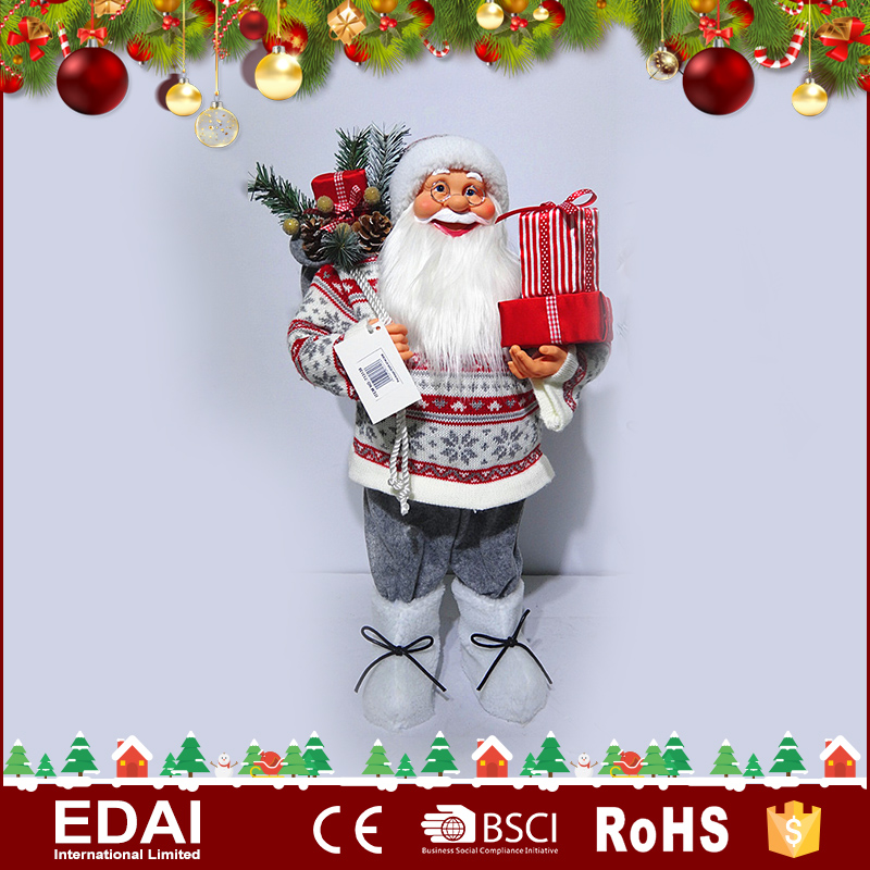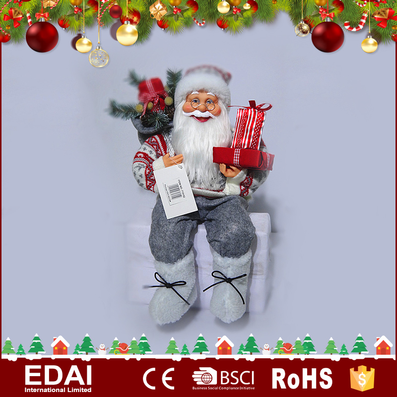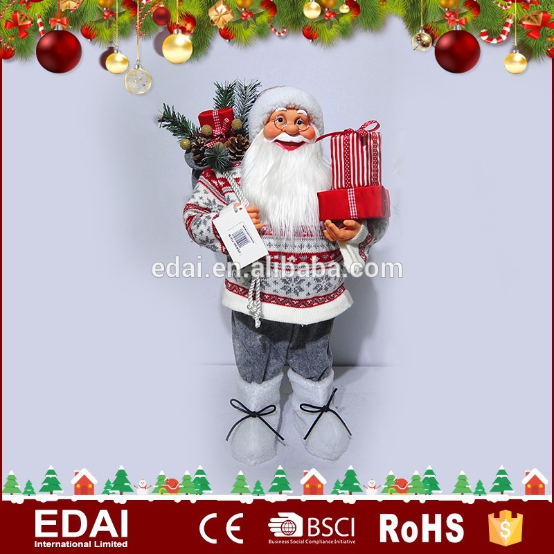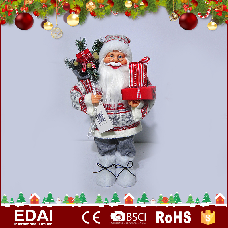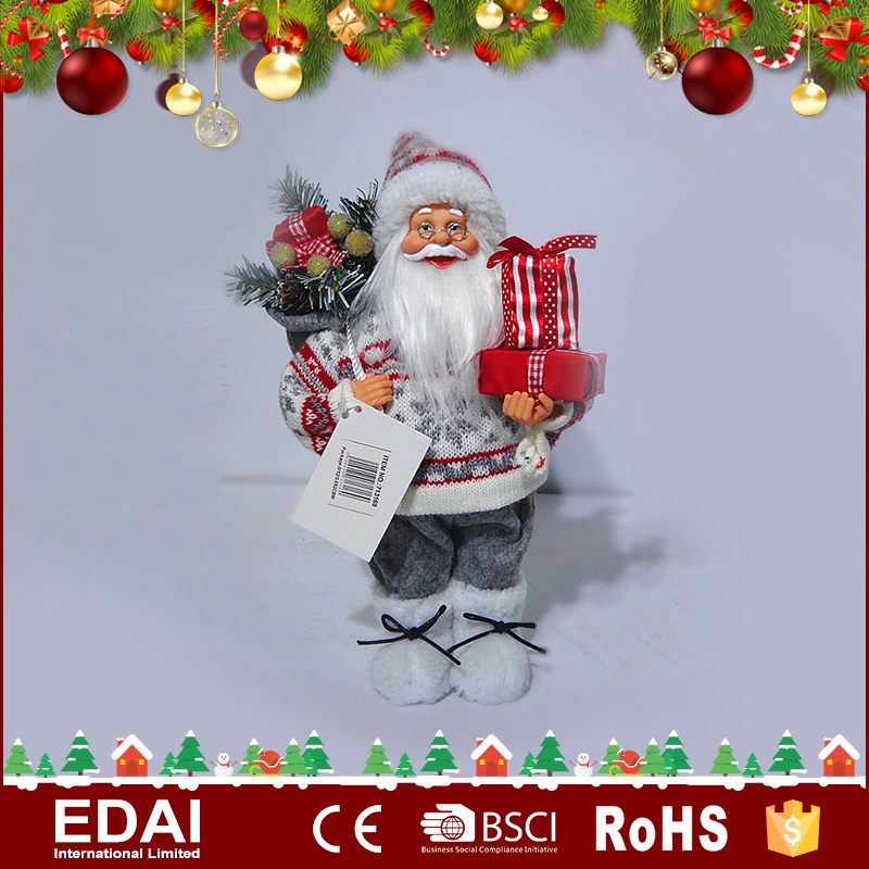 Wholesale Christmas indoor decoration plastic promotional cheap Santa toy with colourful fabric clothes