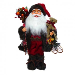 High Quality noel 40 cm plastic Standing Santa Claus tabletop Christmas decor in fabric cloth |