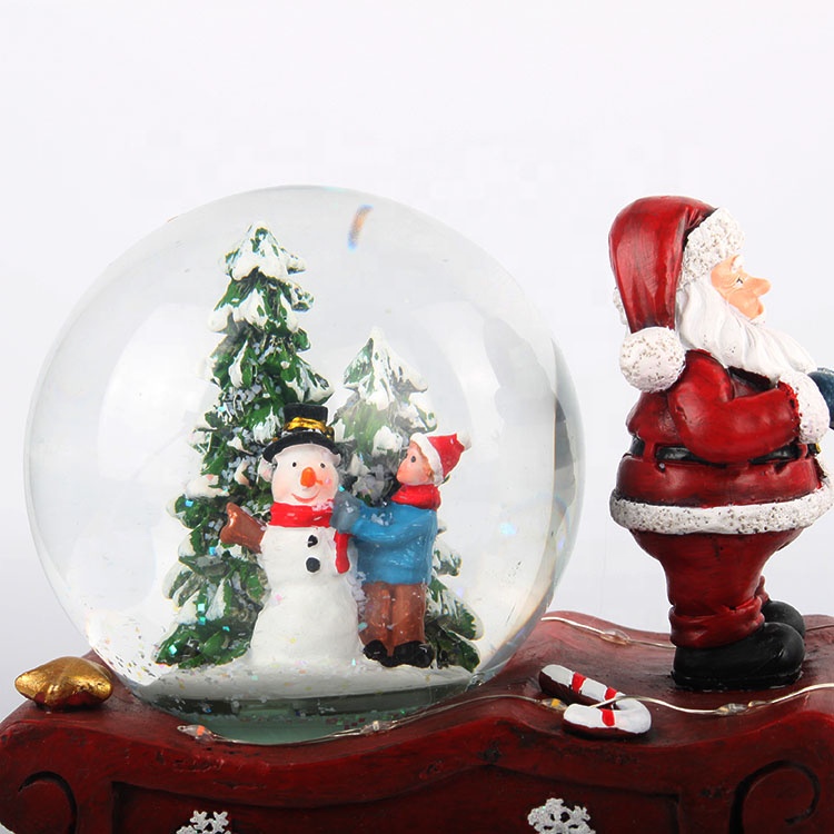 Hot sell Musical flashing led polyresin Santa Sleigh reindeer water ball Christmas decoration |