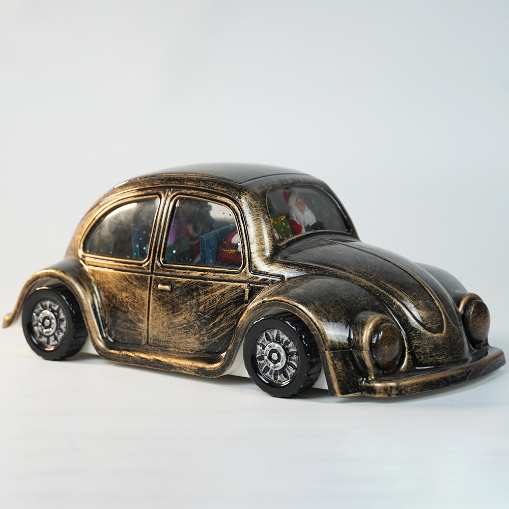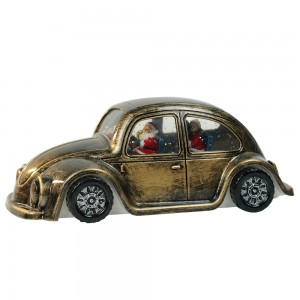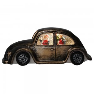 Hot sell new bronze Plastic vintage car Xmas Santa Scene musical led water spinning Christmas snow globe |