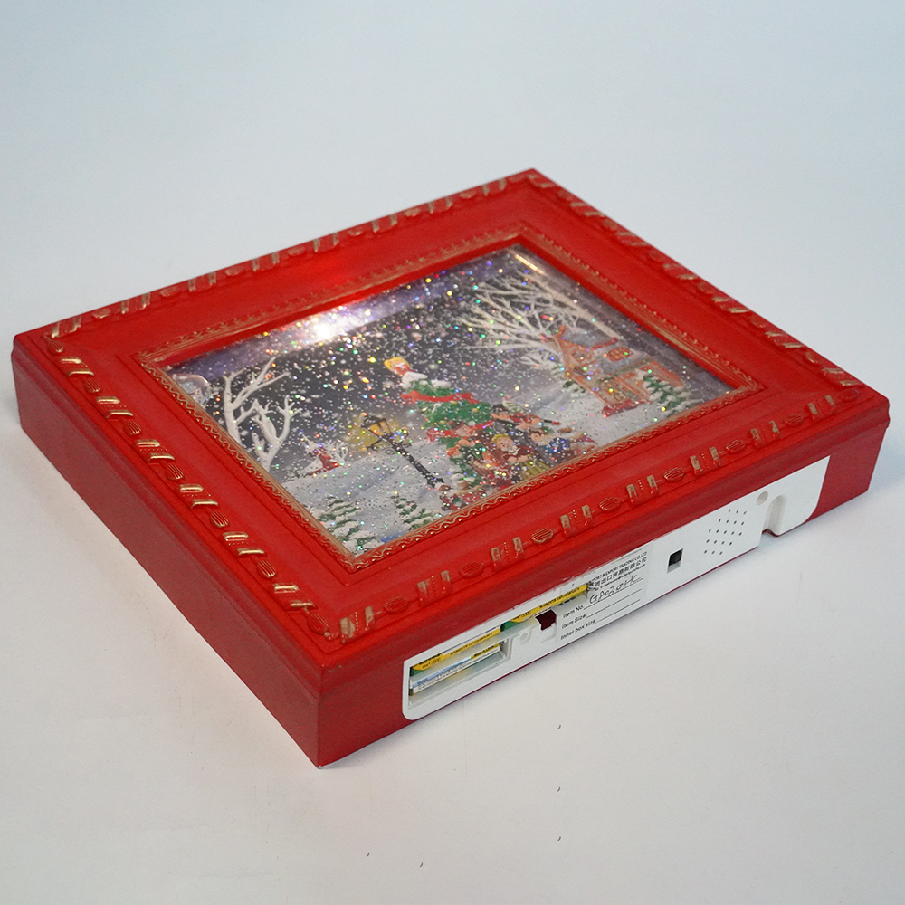 Hot sell new noel carollers Xmas tree village scene Photo frame water spinning musical led Christmas snow globe |