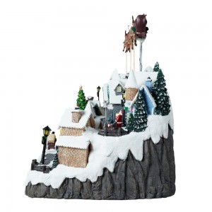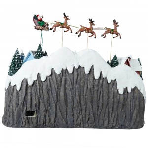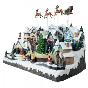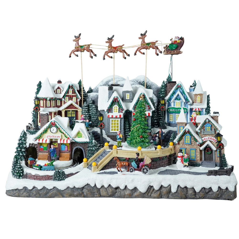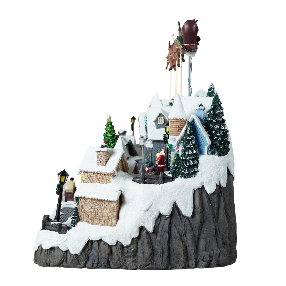 Large Size Musical Polyresin Christmas LED House flying Santa sleigh scene Christmas Village with rotating Xmas tree