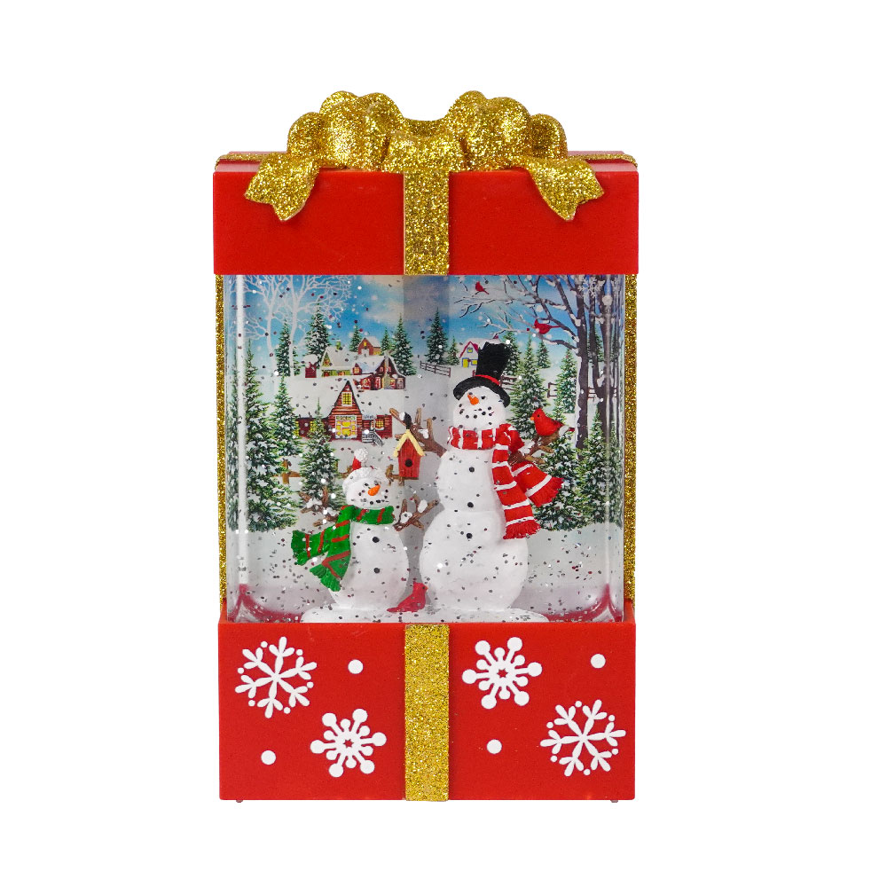 LED illuminated Seasonal decor Gift Box Christmas Snow globe