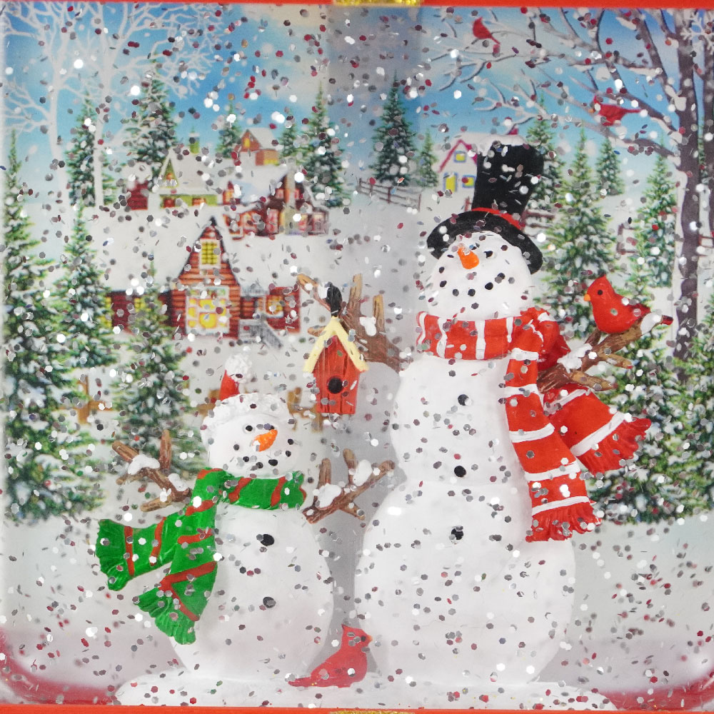 LED illuminated Xmas noel snowman water glitter spinning Gift Box Christmas snow globe