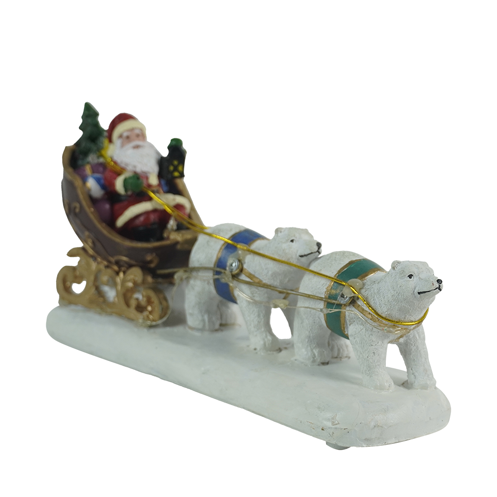 LED Light Polar Bear Pull Sledge Resin Craft Christmas Decoration Home Table Decor