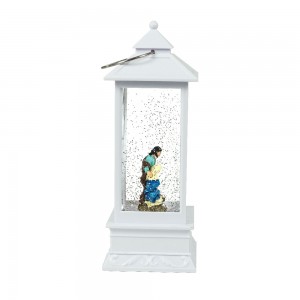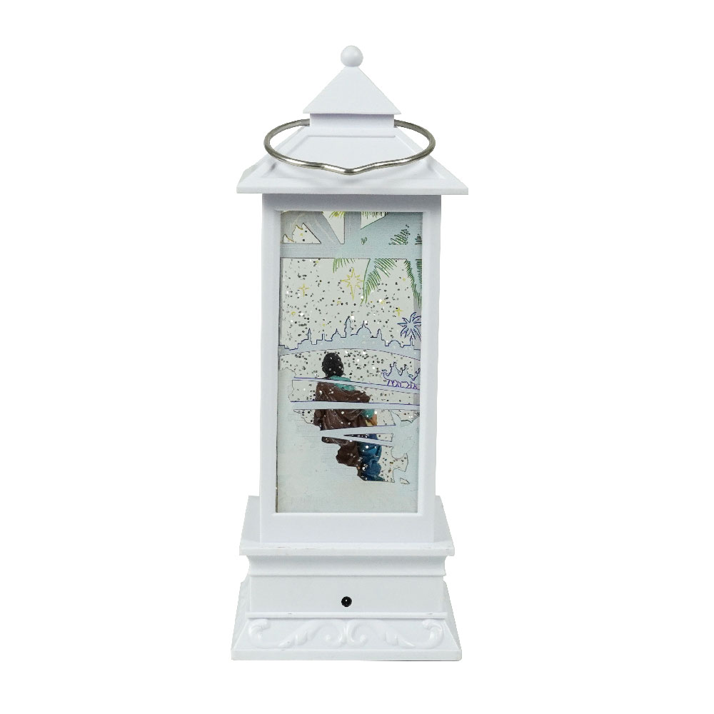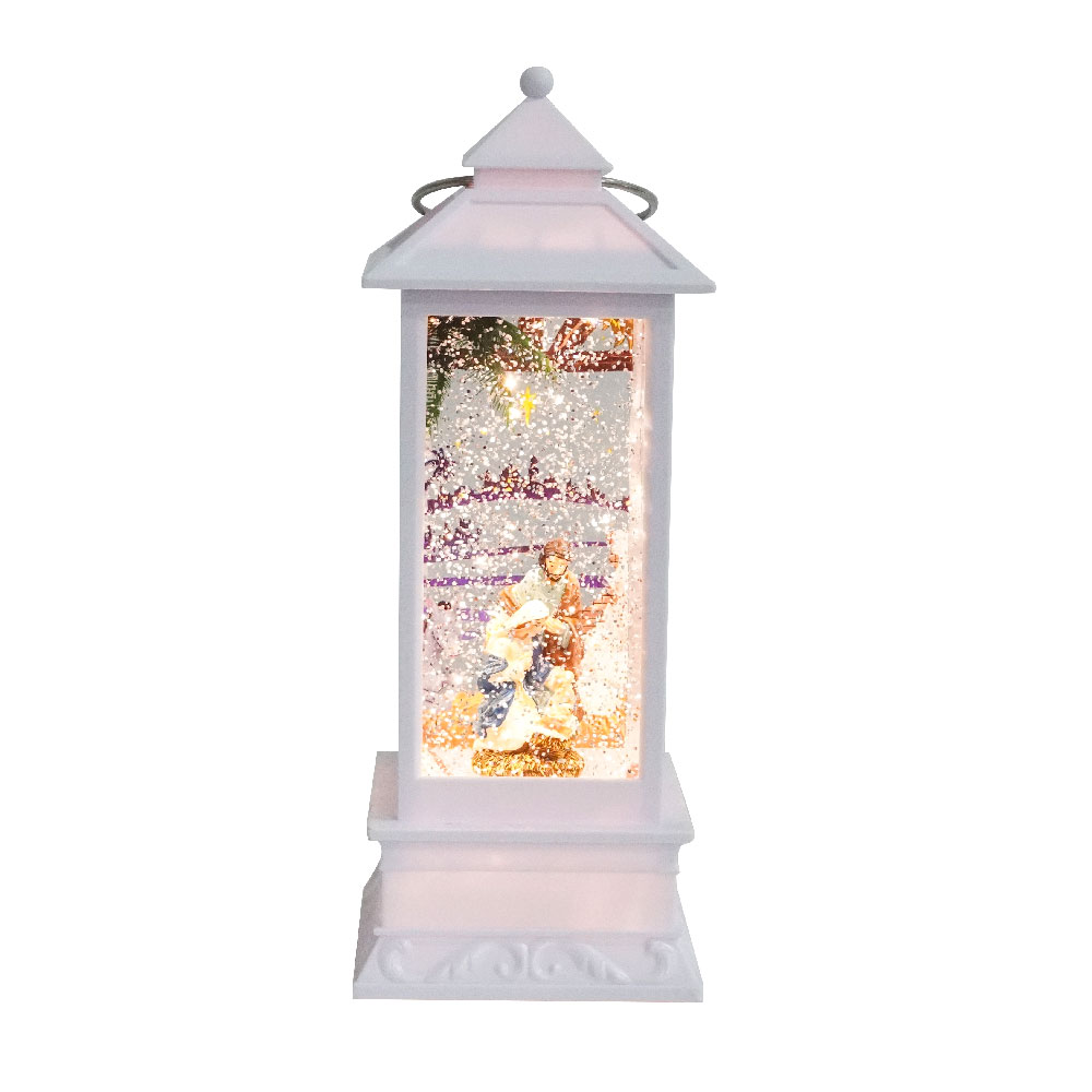 LED light up religious nativity scene swirling water glittering christmas snow globe lantern