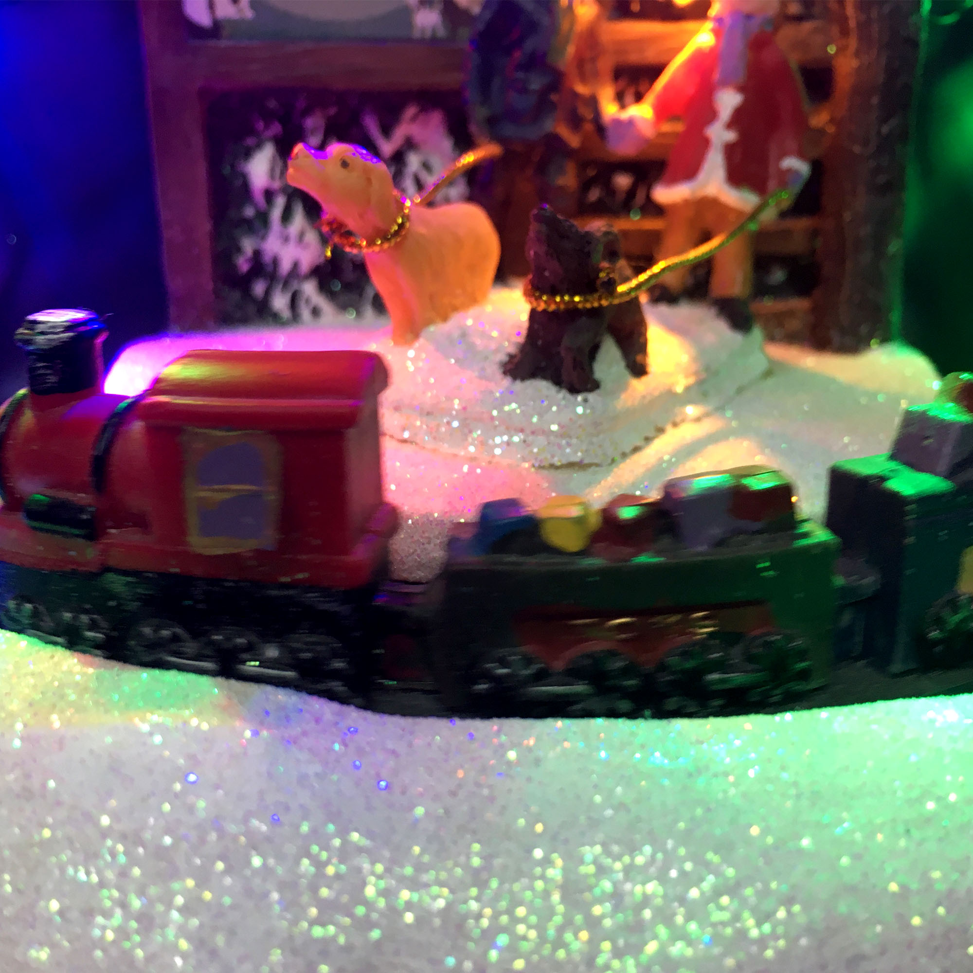 LED light up Snow Scene Doggy & rotating Train resin musical Christmas village for seasonal decor and gift