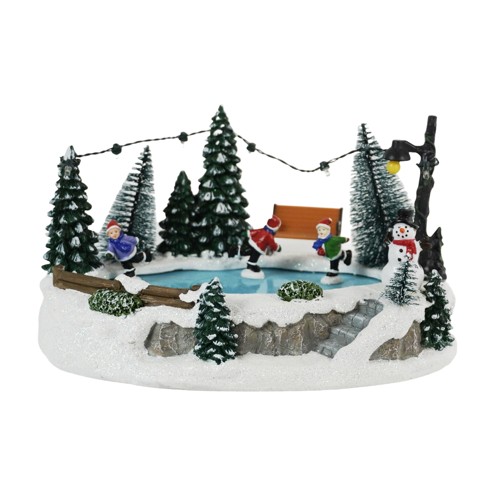 LED Musical Resin Village with Skater Decoration Christmas Ornaments and Gifts Christmas Skating Village