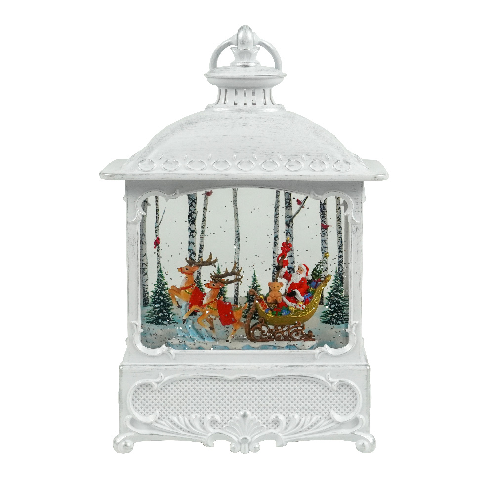 LED Resin Xmas Santa Sleight Scene glitter swirling water lantern Christmas snow globe Decoration