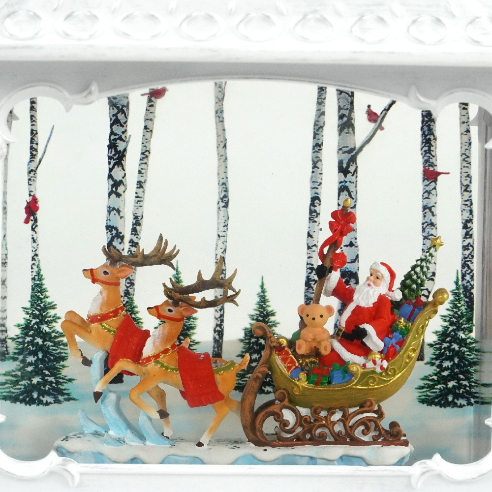 Santa Sleigh Scene, Warm White LED with water glitter spinning