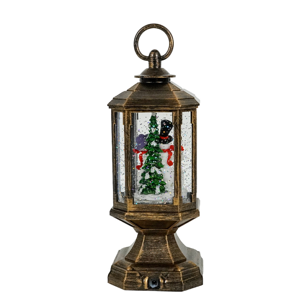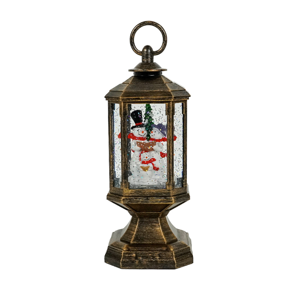 MELODY Antique Lantern LED light up water spinning Xmas snowman scene Swirling Glitter Christmas Snow globe