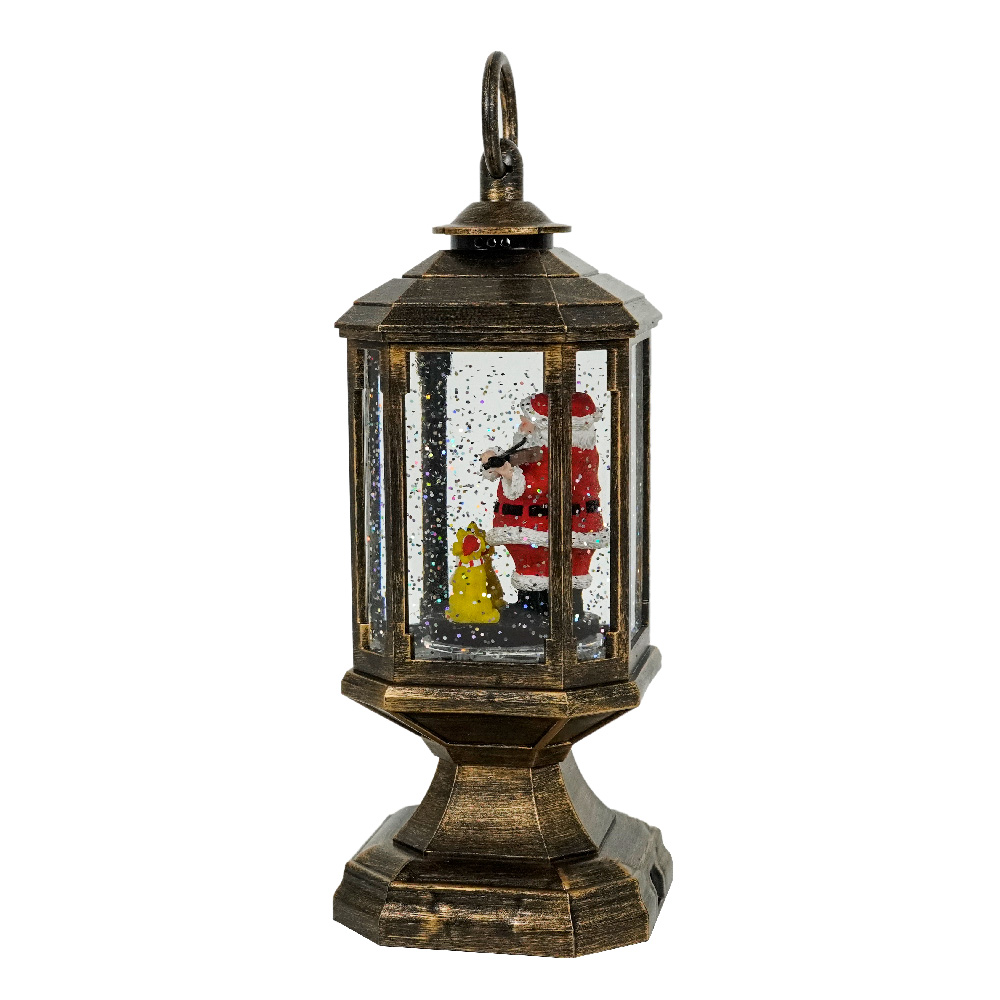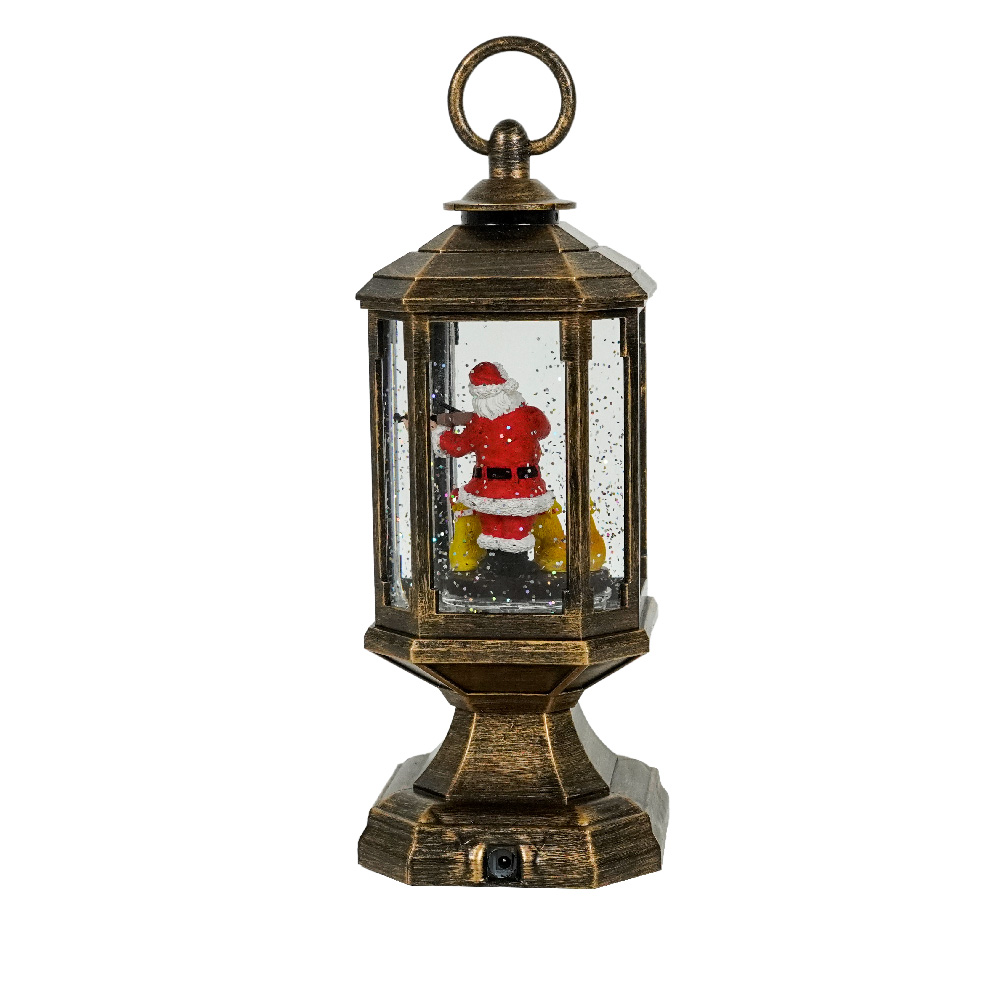 MELODY Antique Lantern LED light up water spinning Xmas Santa Claus scene Swirling Glitter Christmas Snow globe