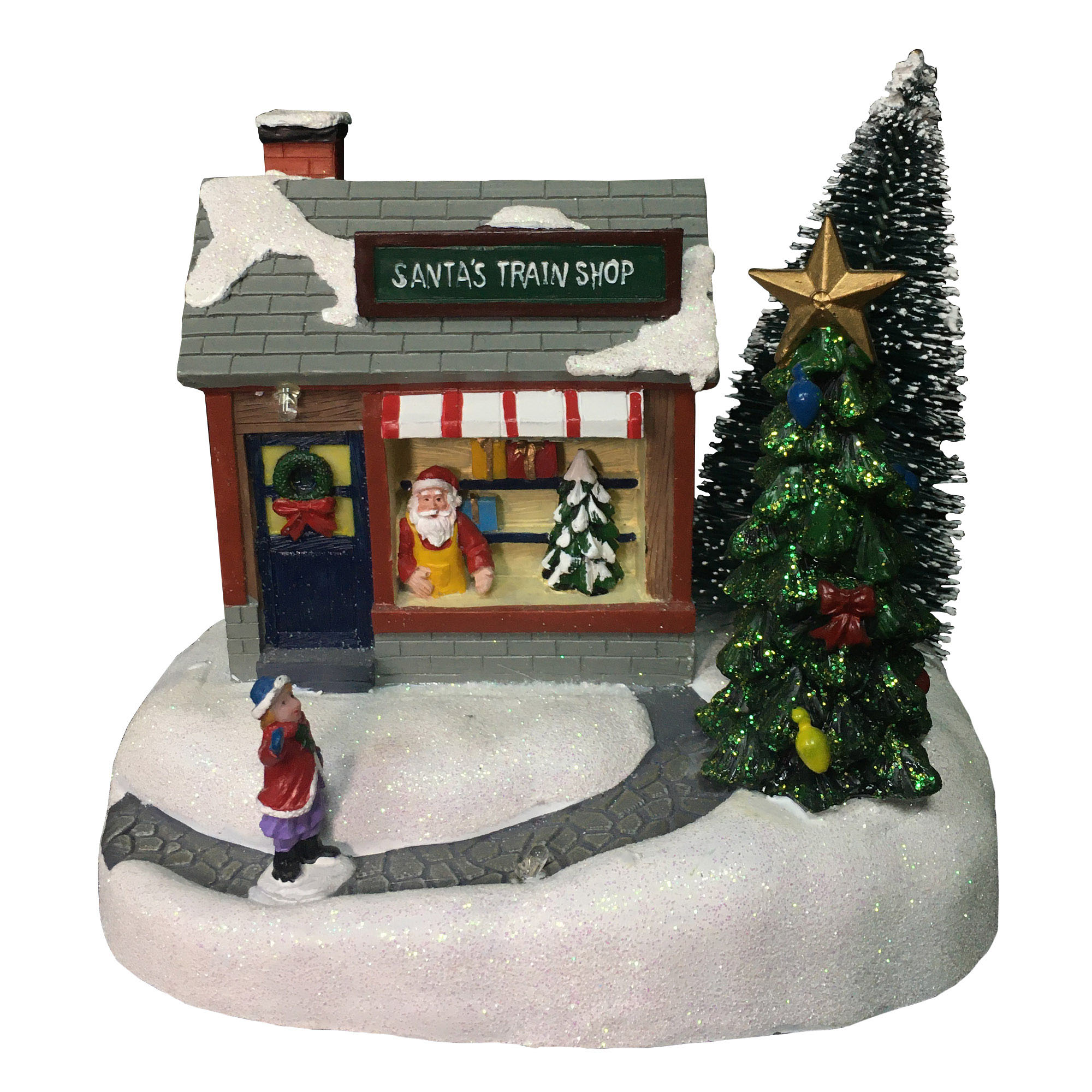 Melody colorful Xmas village Christmas Decoration Santa's Train Shop scene led lighted Christmas house