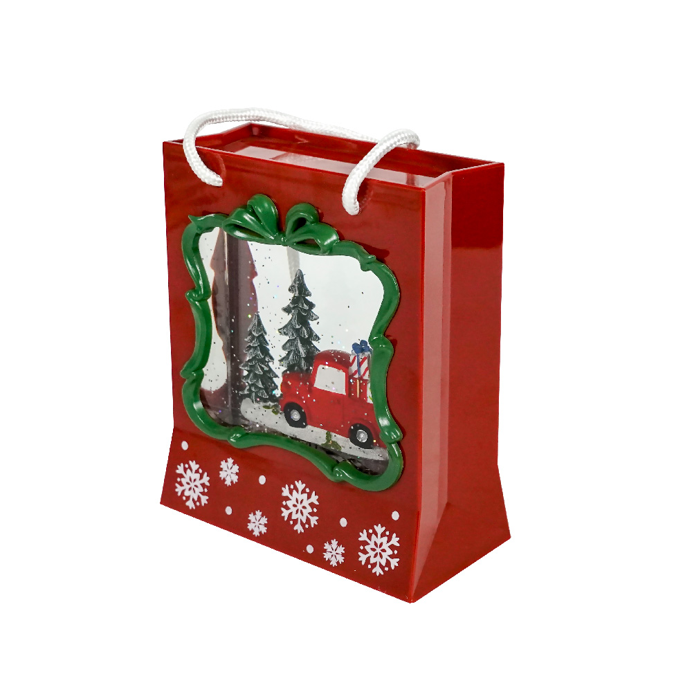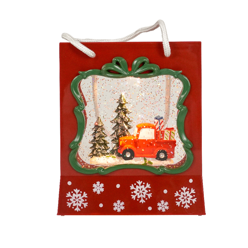 MELODY LED light up water spinning Swirling Xmas truck scene Glitter hanging Gift Box Lantern Christmas snow globe