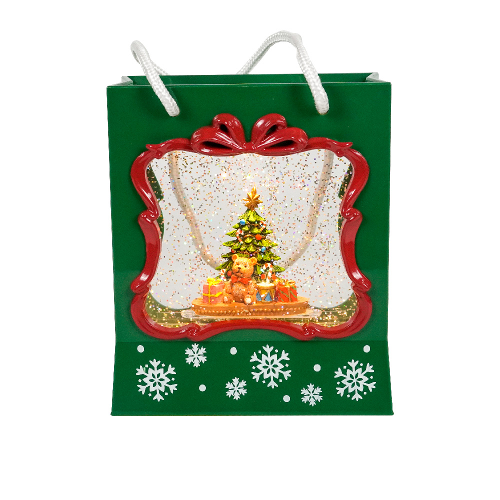 MELODY LED light up water spinning Xmas tree scene Swirling Glitter hanging Gift Box Lantern Christmas snow globe
