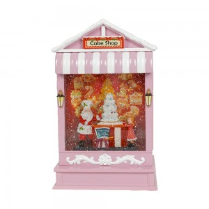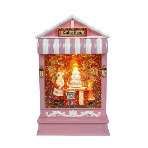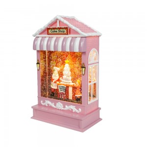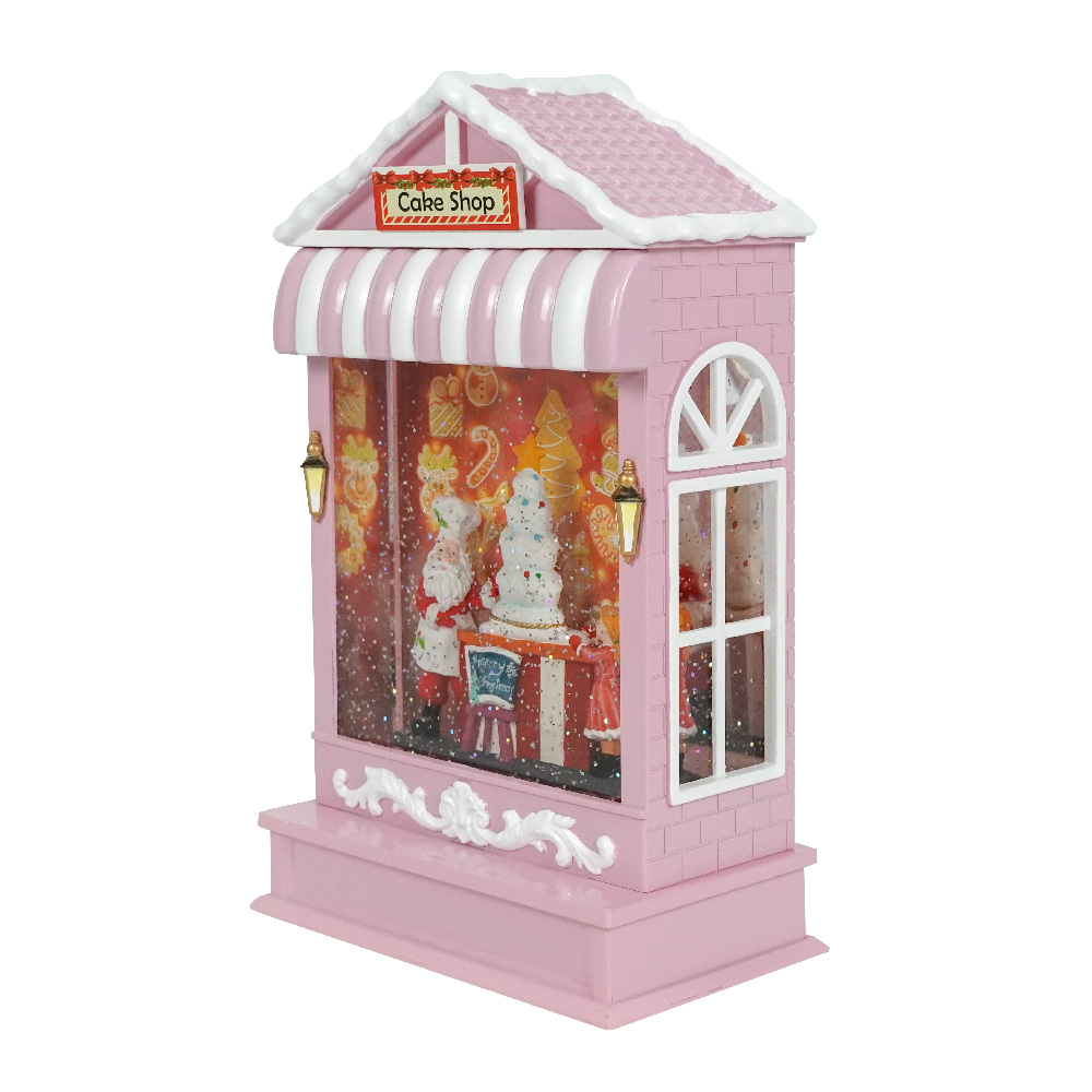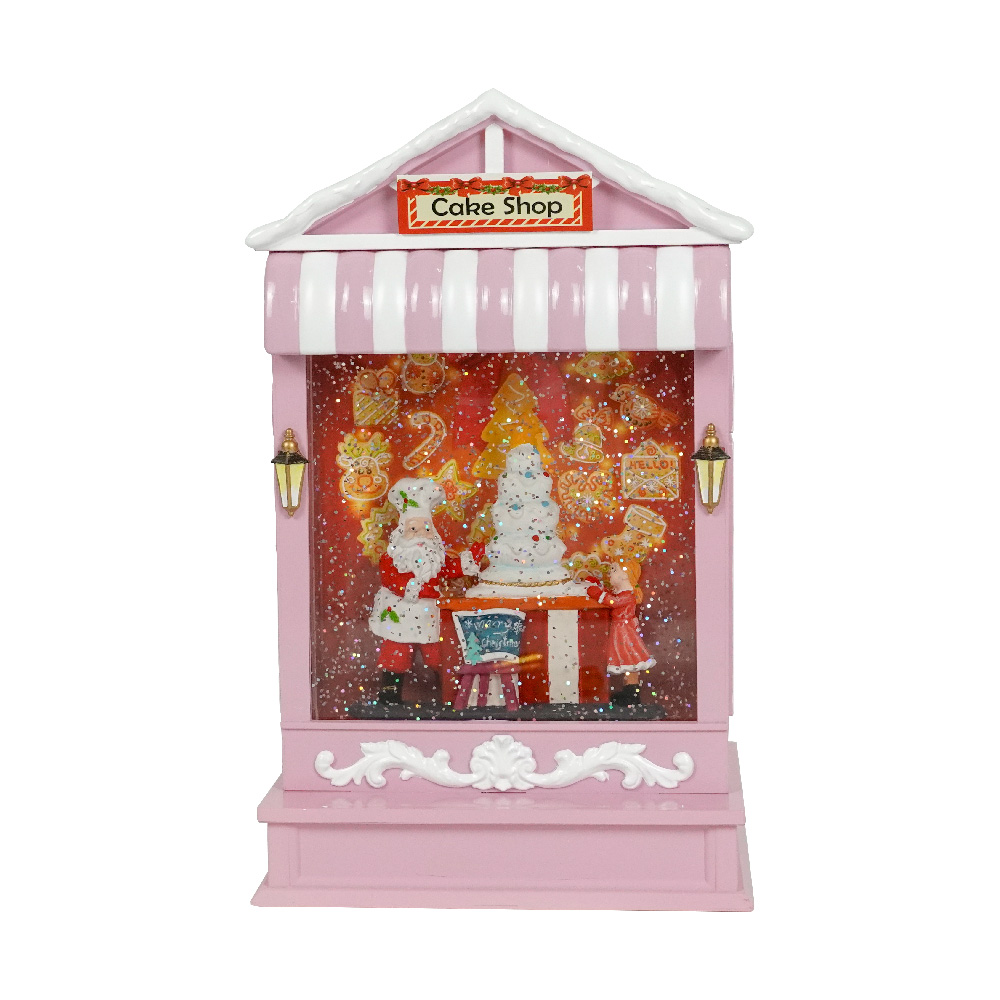 MELODY LED light up Xmas cake shop scene giltter swirling water lantern Christmas snow globe