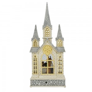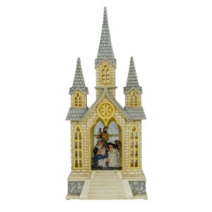 Xmas Nativity Scene Church Lantern, With Warm White LED & water glitter spinning