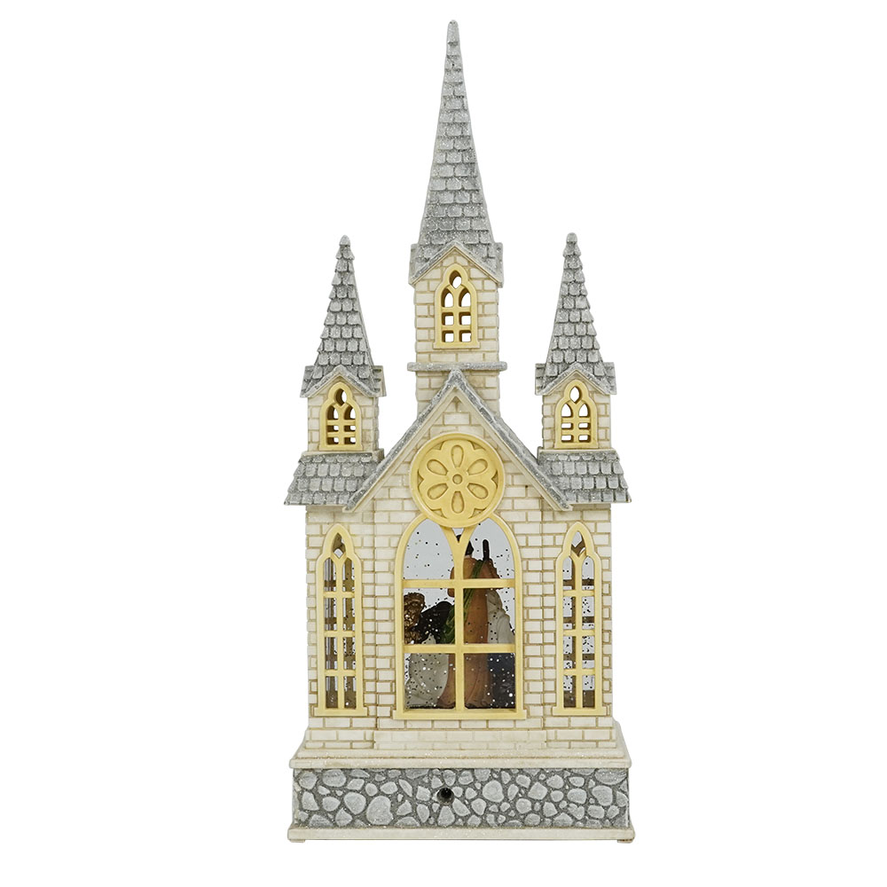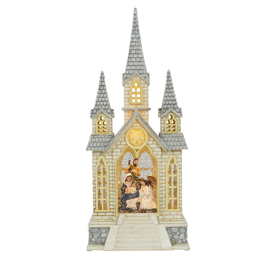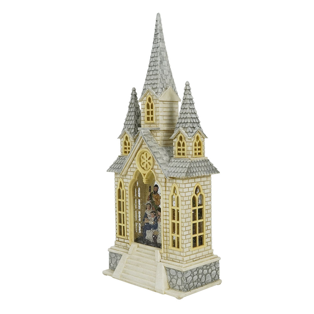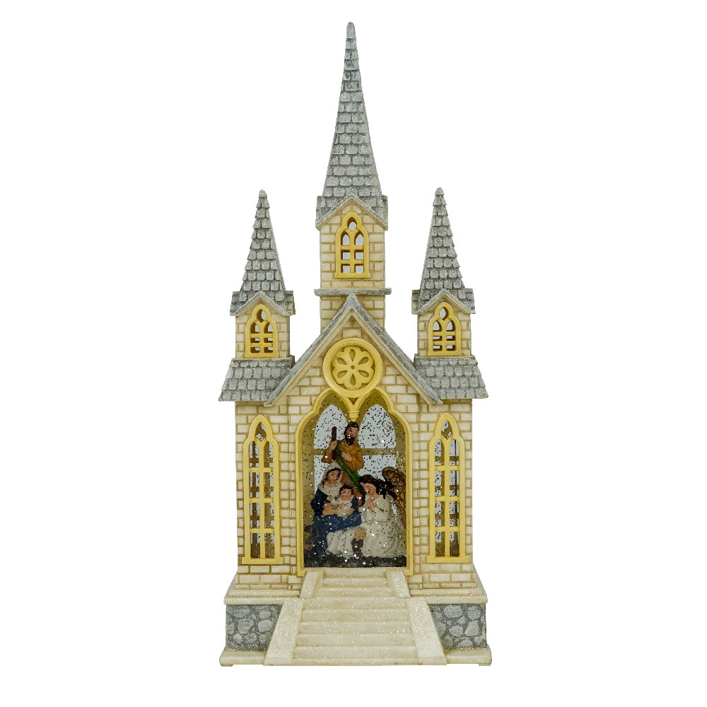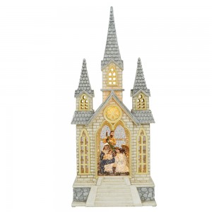 MELODY LED light up Xmas Nativity Scene giltter swirling Church water lantern Christmas snow globe decoration