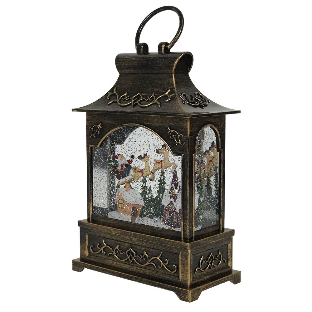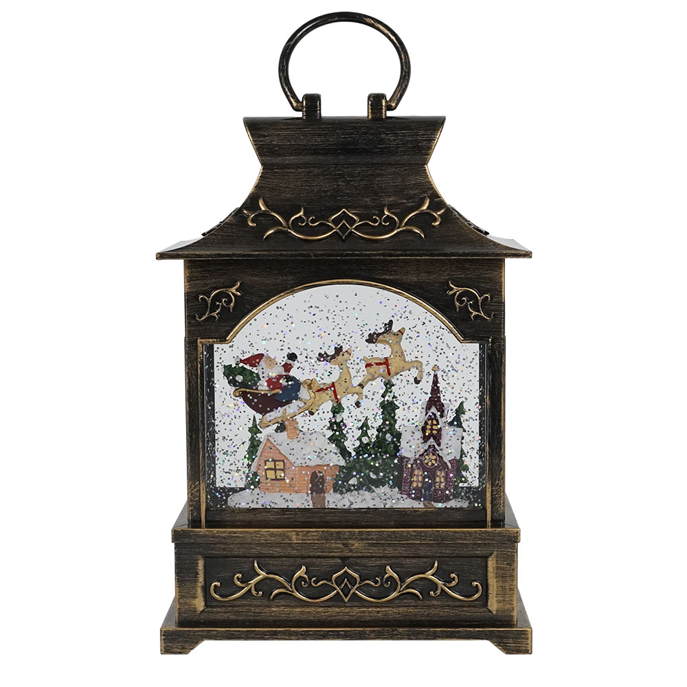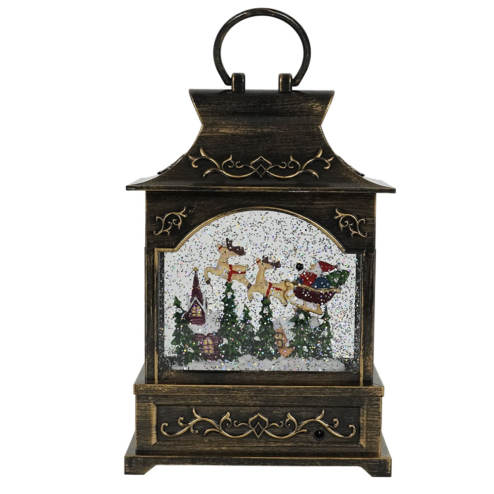MELODY LED light up Xmas Santa Sleigh scene giltter swirling water lantern Christmas snow globe decoration