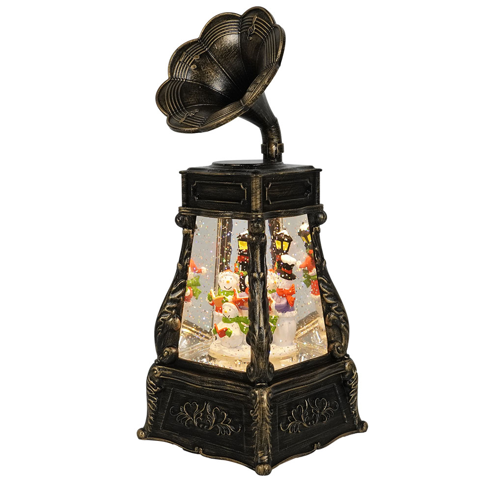 MELODY LED light up Xmas snowman Scene Swirling Glitter water spinning phonograph lantern Christmas Lantern Snow globe
