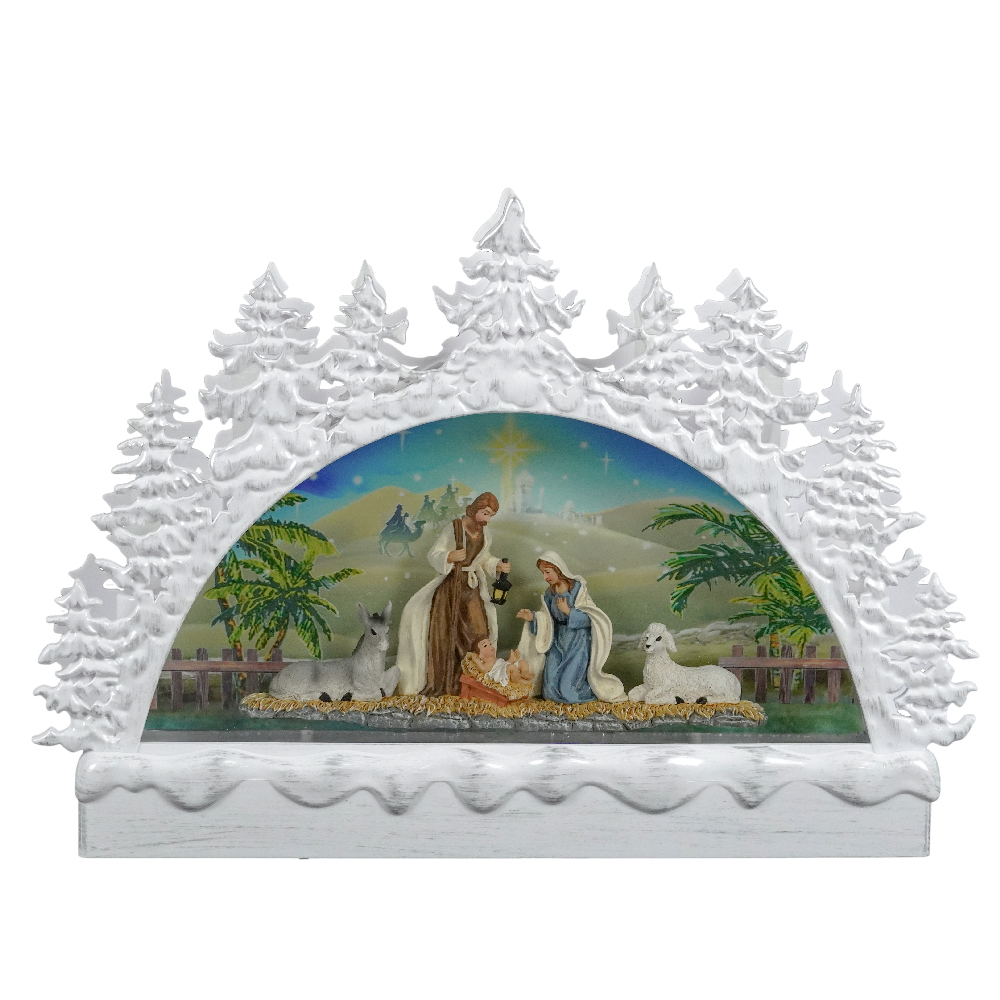 MELODY LED resin nativity scene Swirling Glitter arch Candle Lantern Water Spinning Christmas snow globe