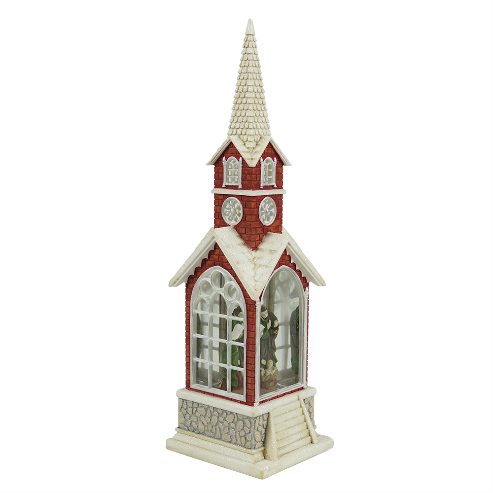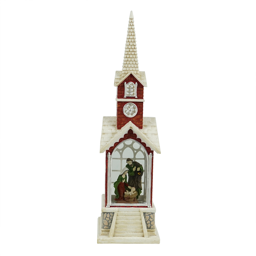 MELODY LED resin nativity scene Swirling Glitter church lantern religious Christmas snow globe Decoration