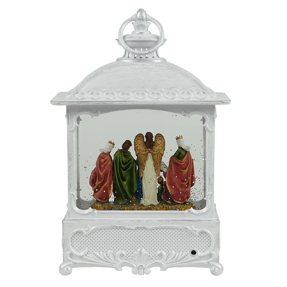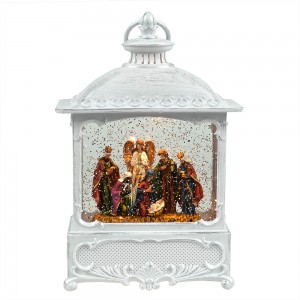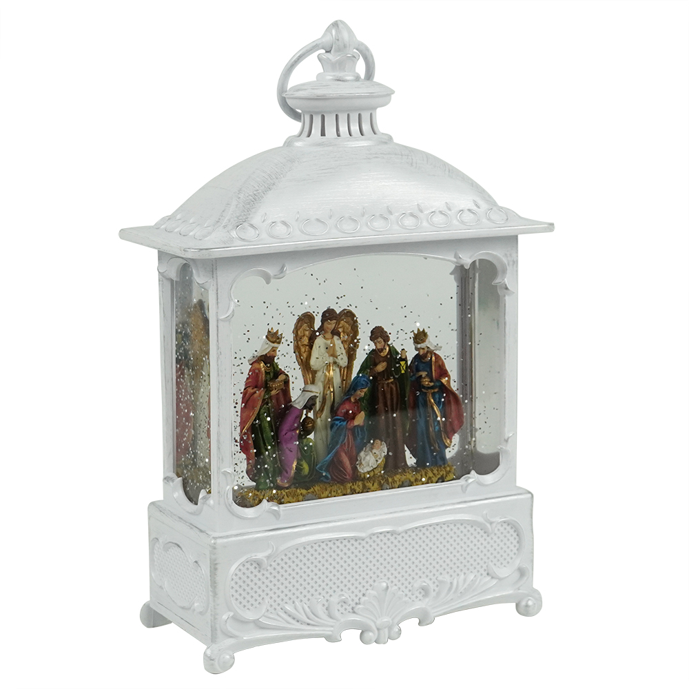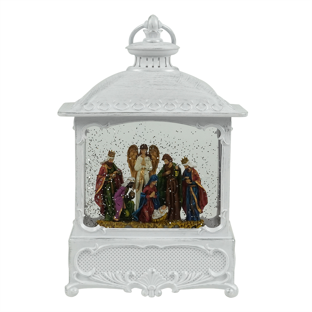 MELODY resin nativity scene LED giltter swirling water lantern Christmas snow globe